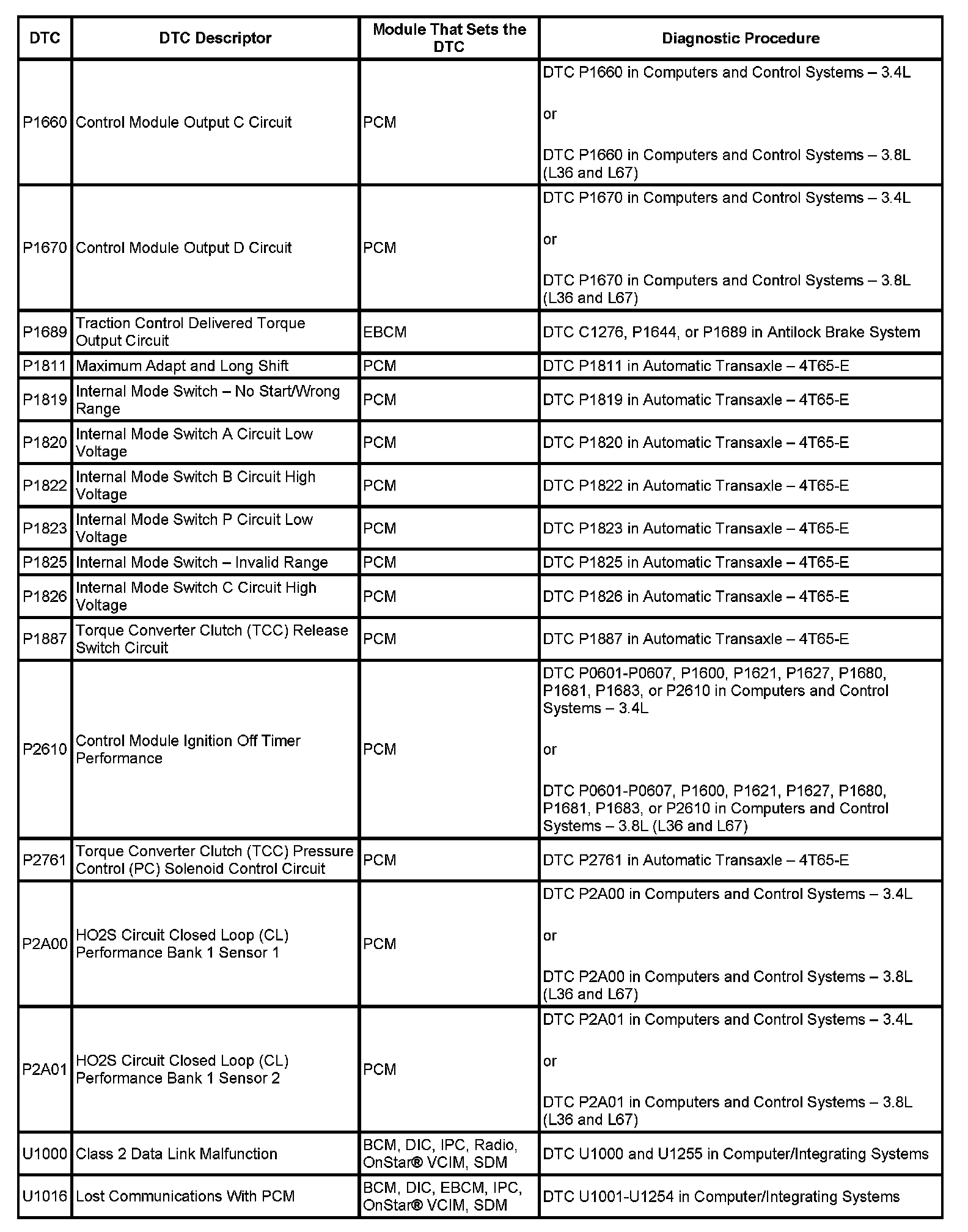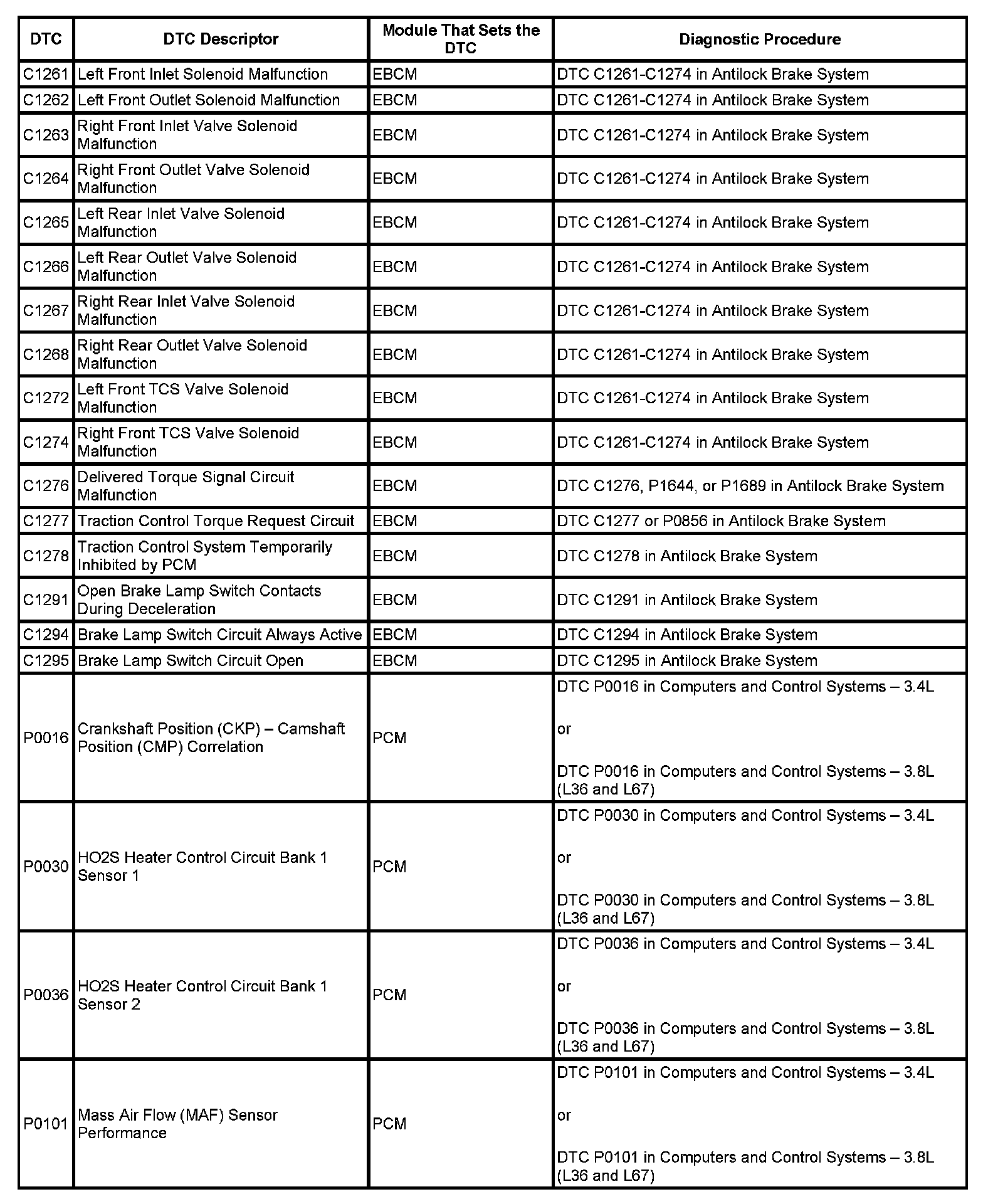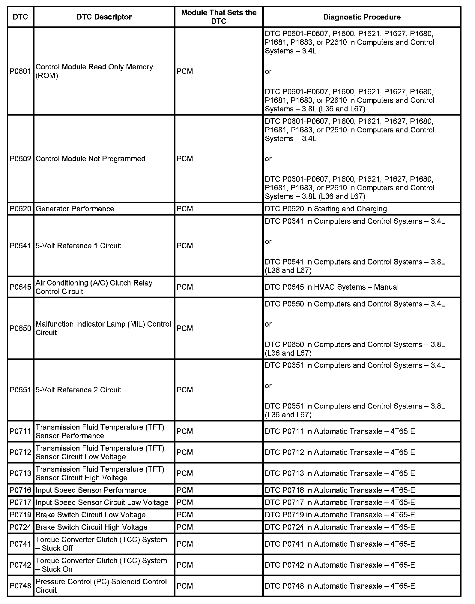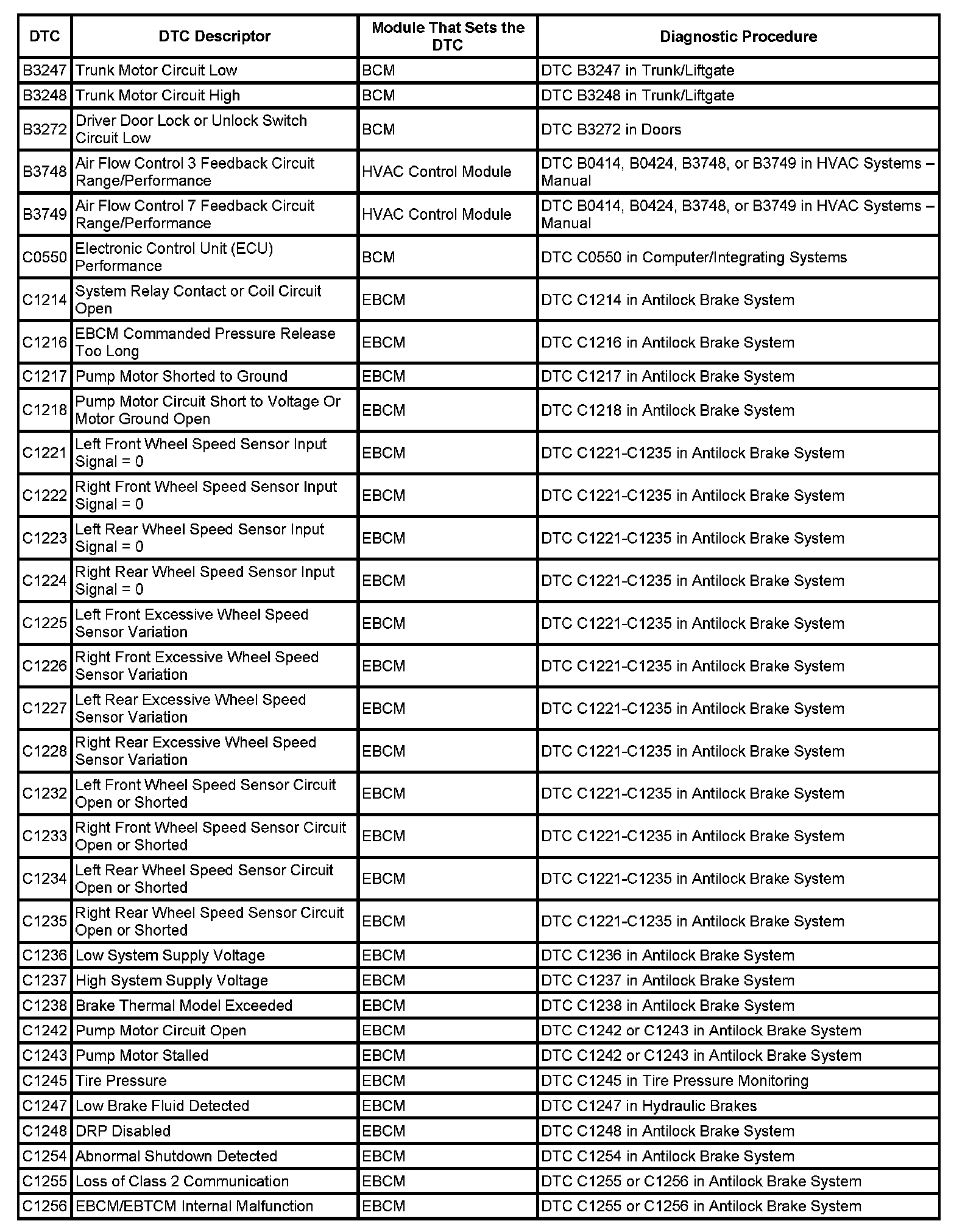 This master DTC list includes all applicable DTCs in alphanumeric order with descriptors.