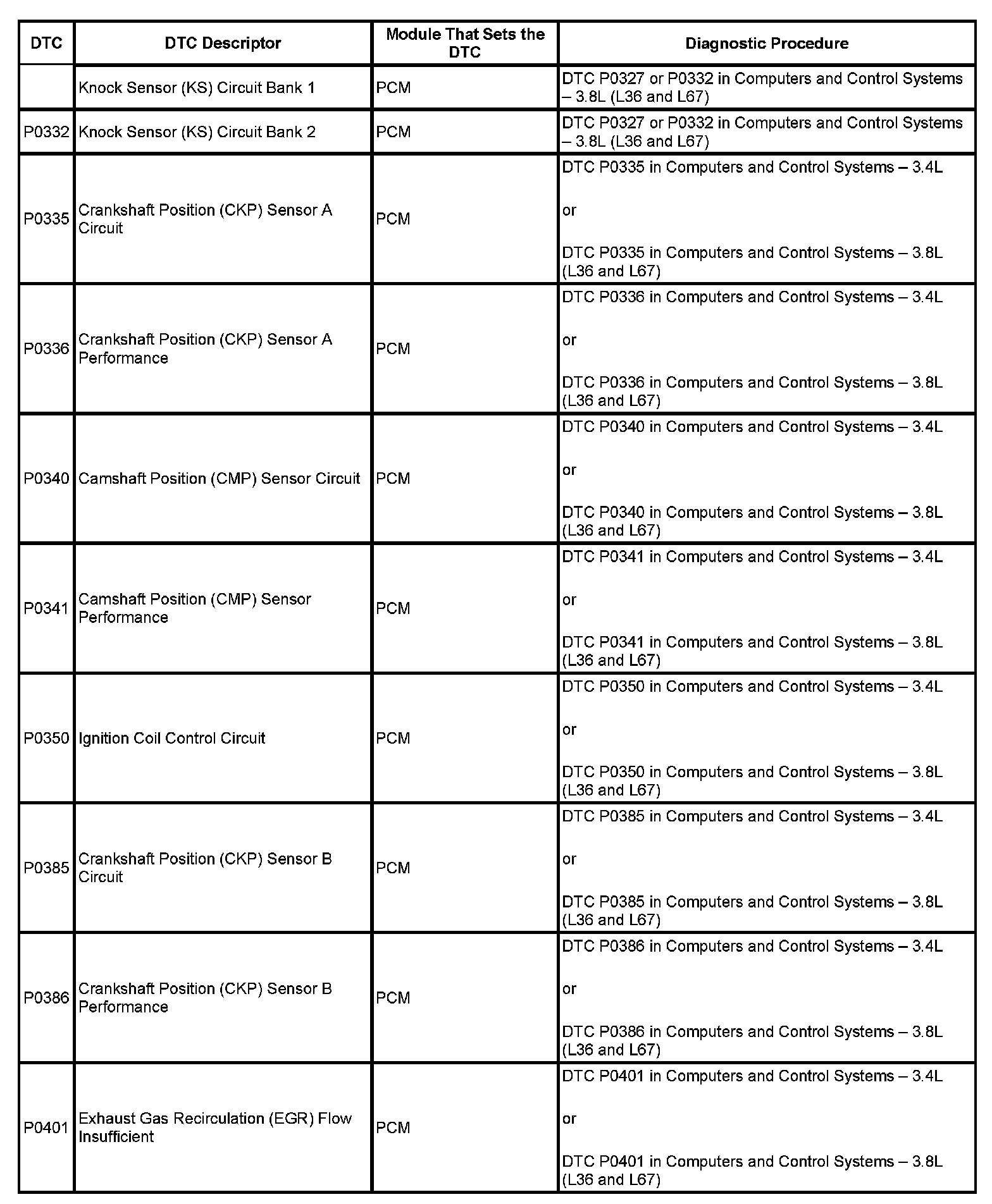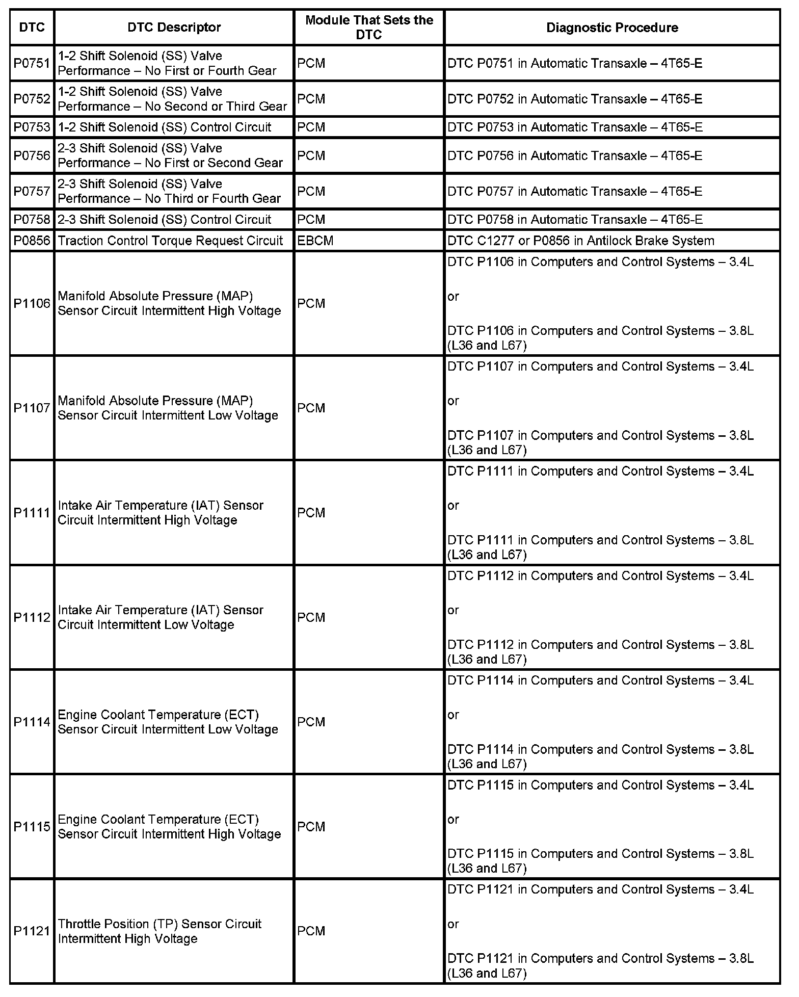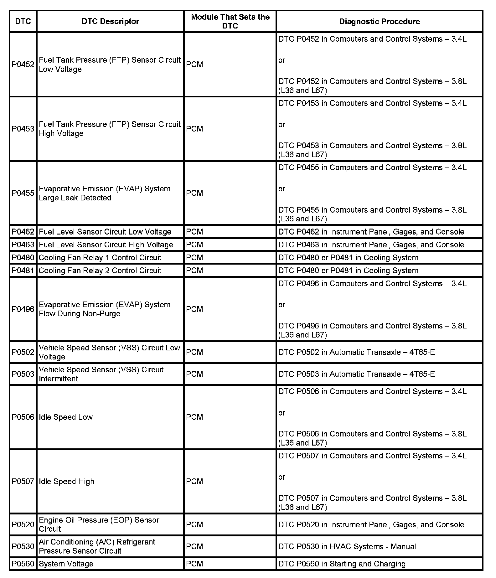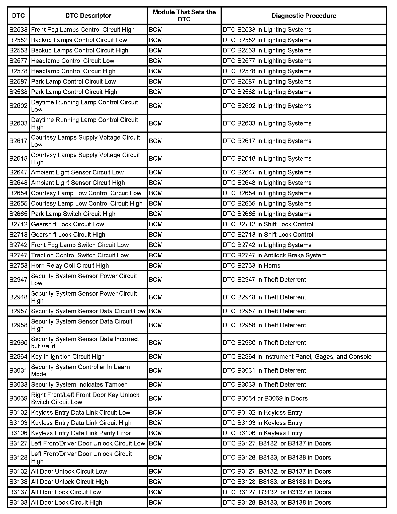This master DTC list includes all applicable DTCs in alphanumeric order with descriptors.