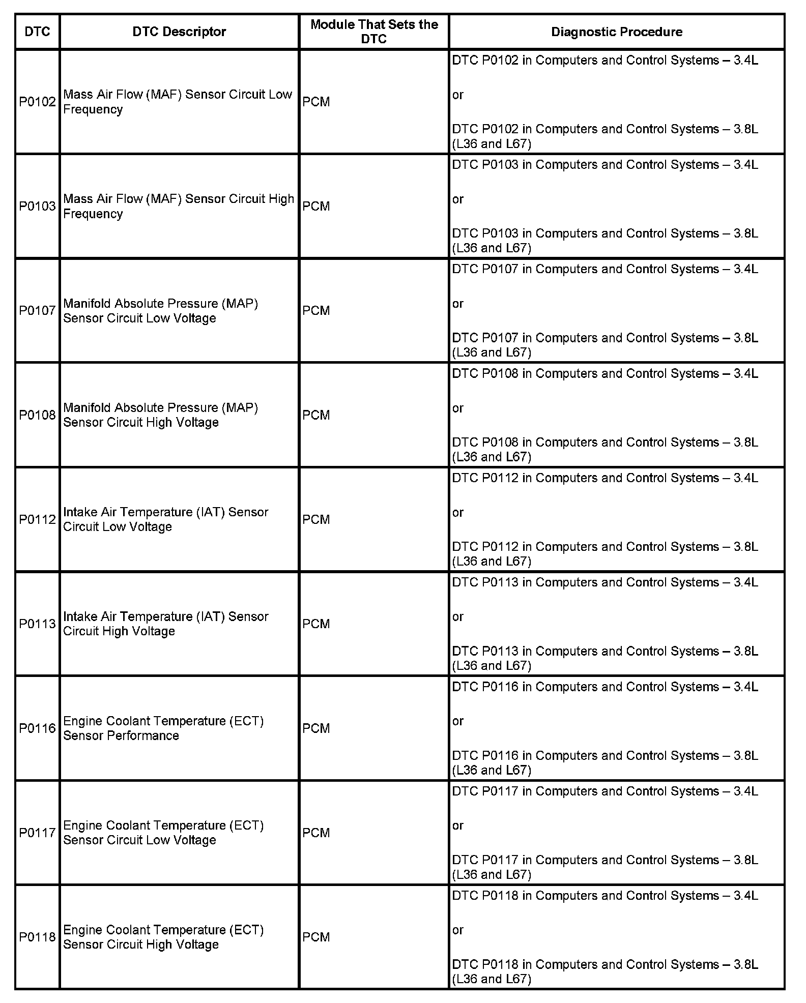 DTC's P0102 - P0118:
