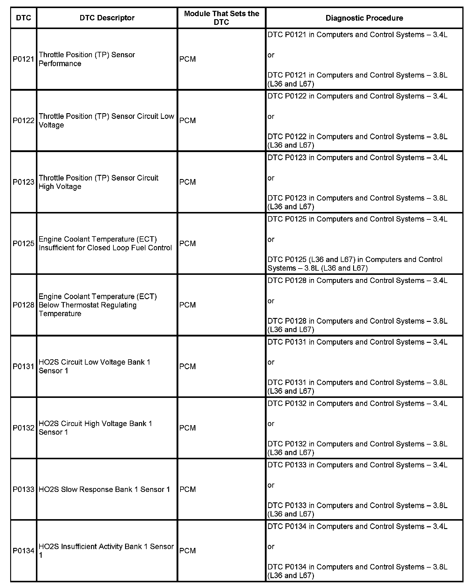 DTC's P0121 - P0134: