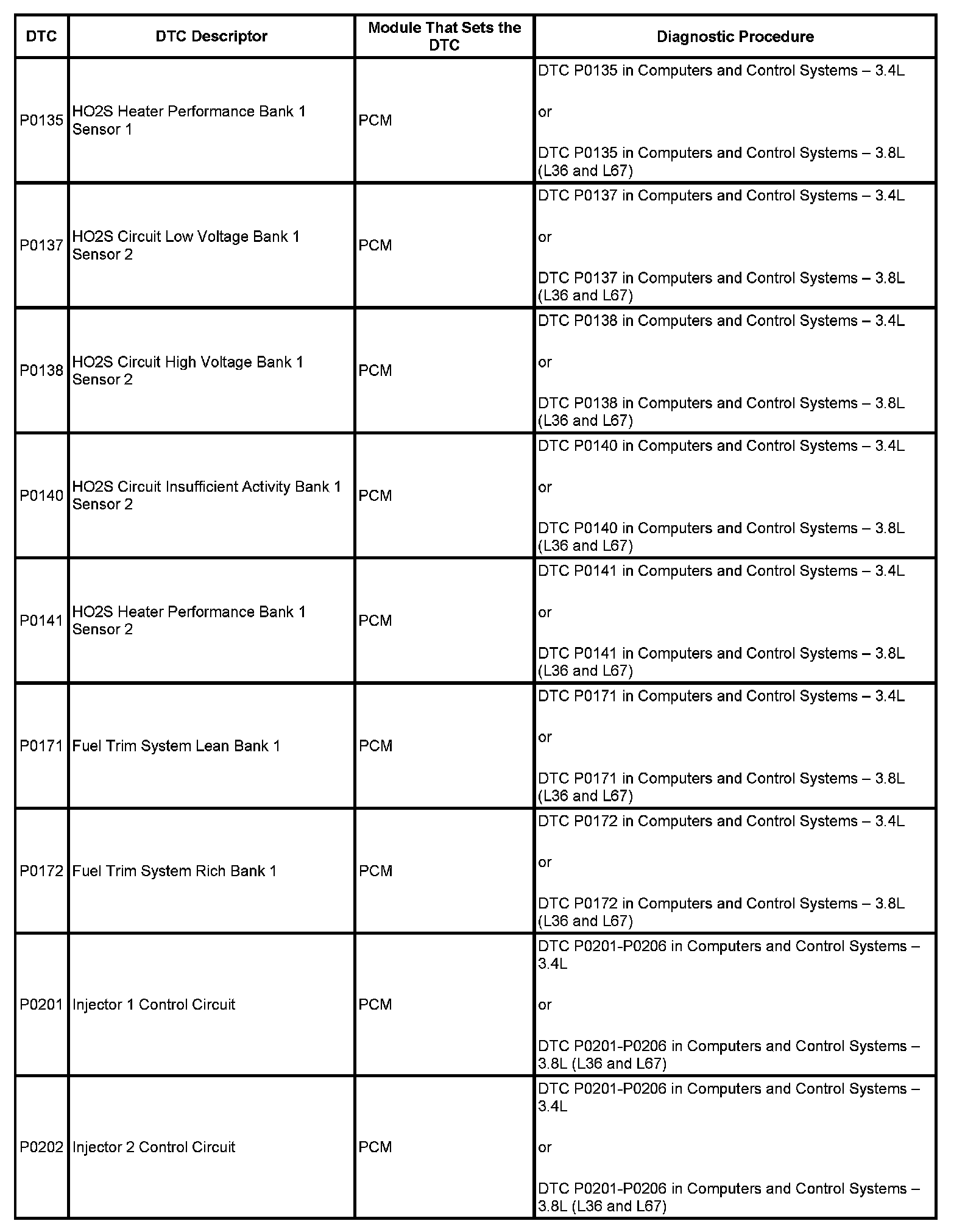 DTC's P0135 - P0202: