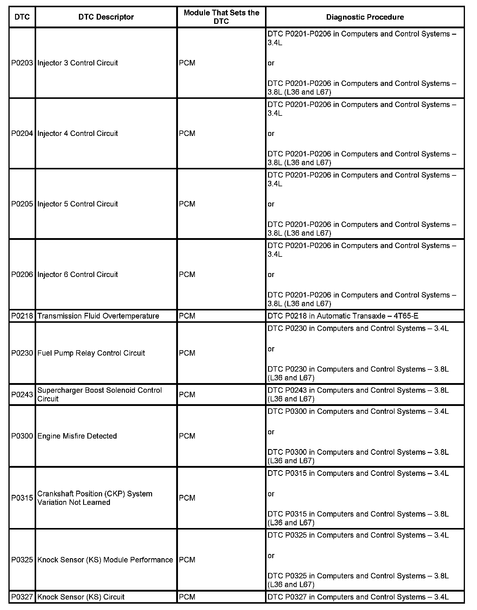DTC's P0203 - P0327: