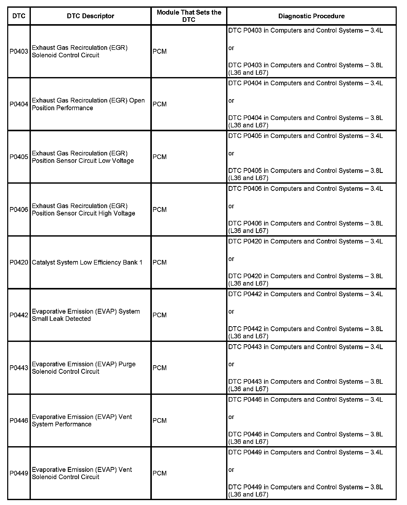 DTC's P0403 - P0449: