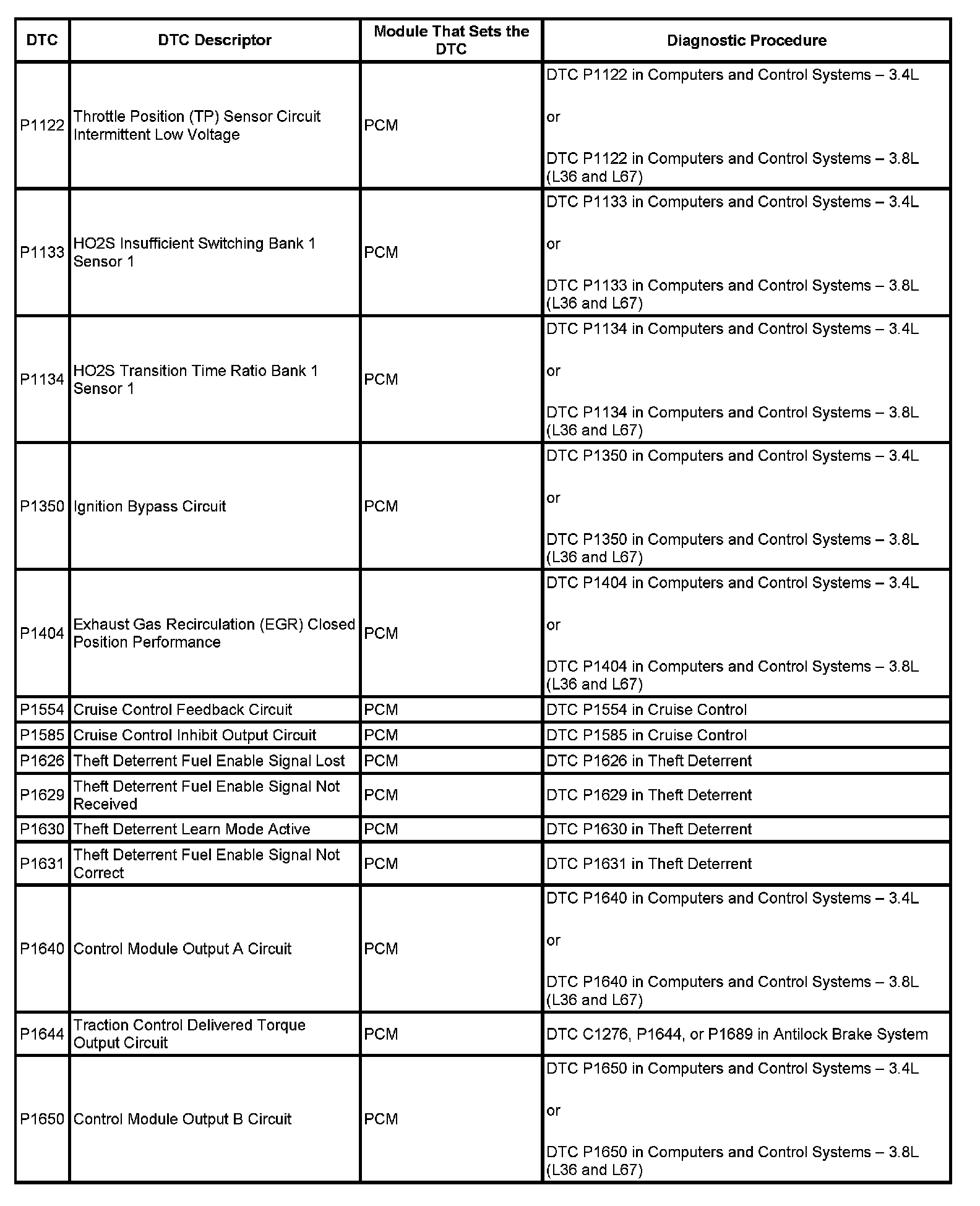 DTC's P1122 - P1650: