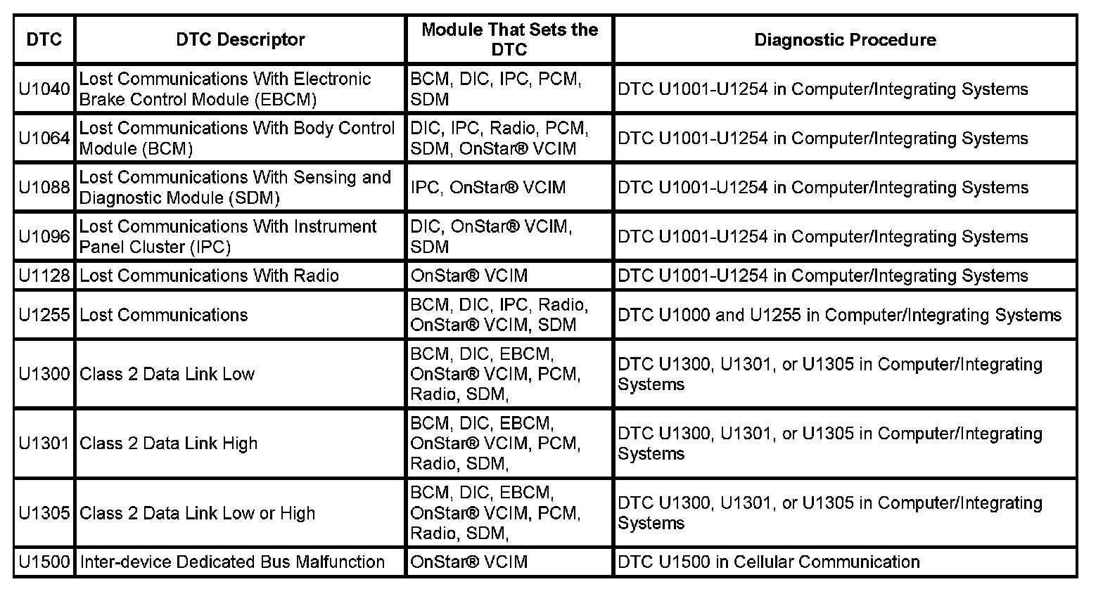 DTC's U1040 - U1500: