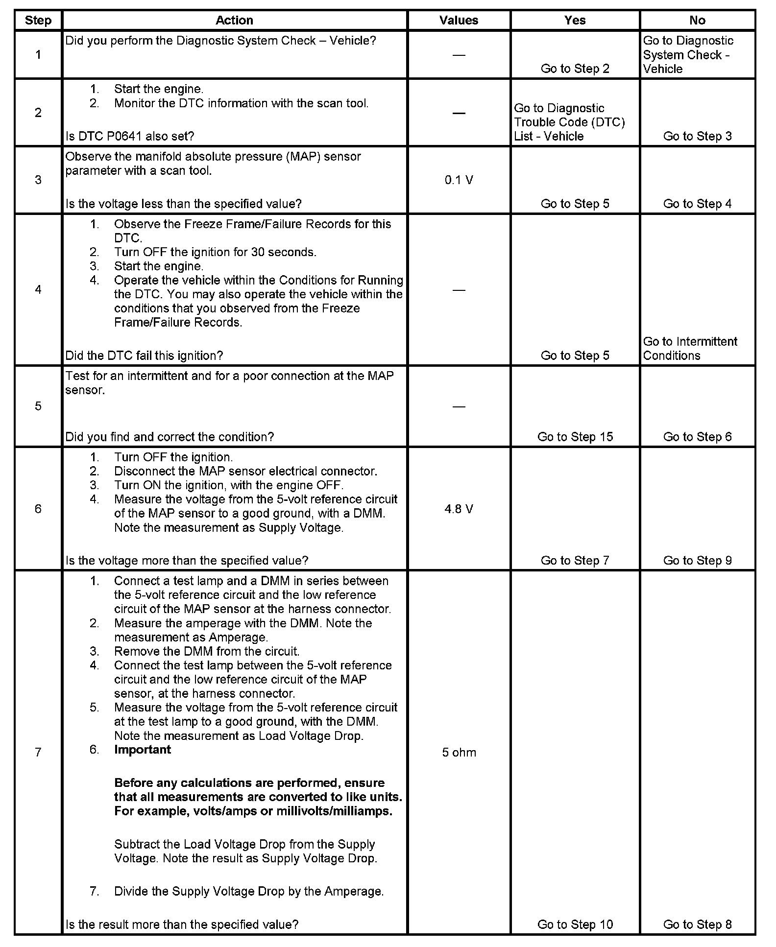 - The PCM detects that the MAP sensor voltage is less than 0.1 volt for more than 3 seconds.