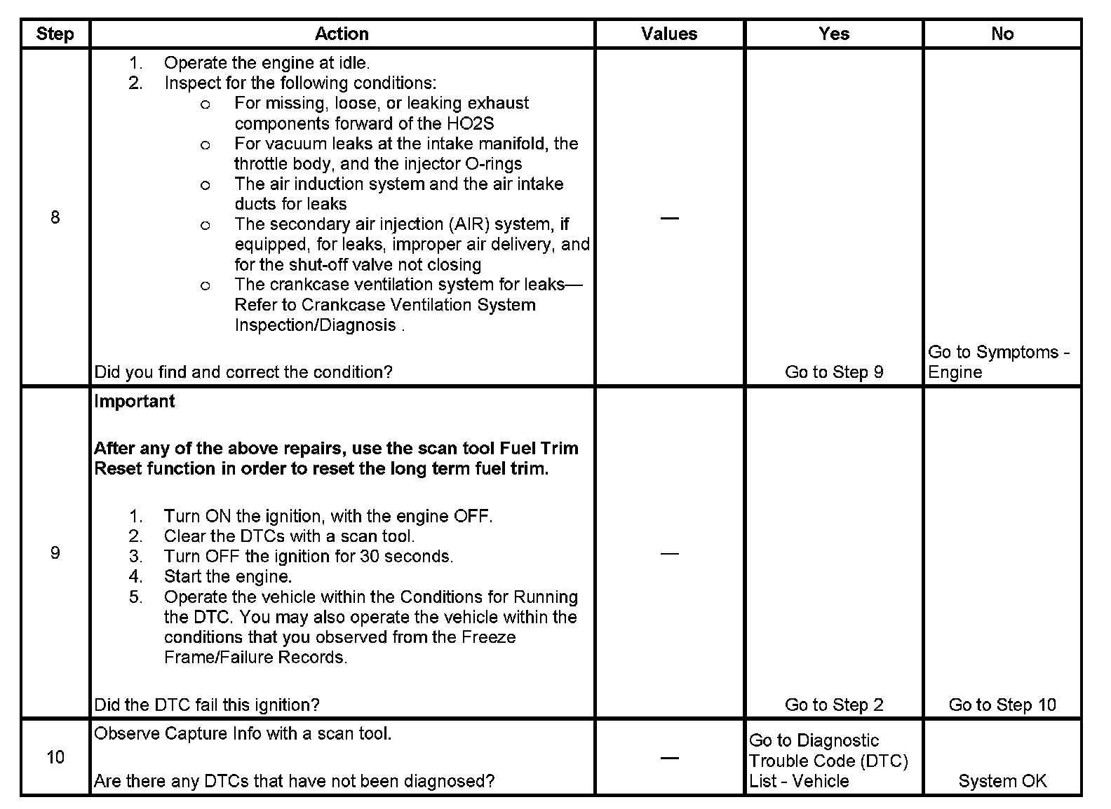 8. If the conditions were not corrected, a worn cam, worn intake or exhaust valves, or other engine mechanical failures may be at fault.