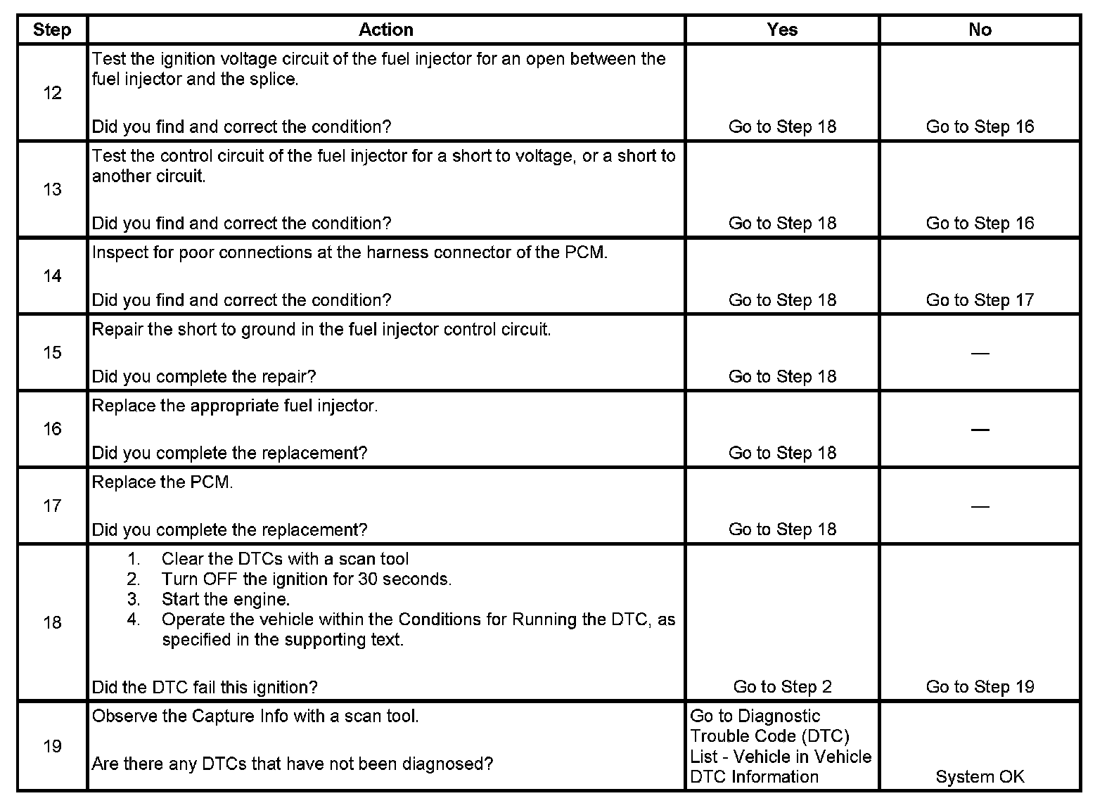 13. This step isolates the circuit between the multi-way connector and the fuel injector. A short to voltage on the fuel injector control circuit will set this DTC.