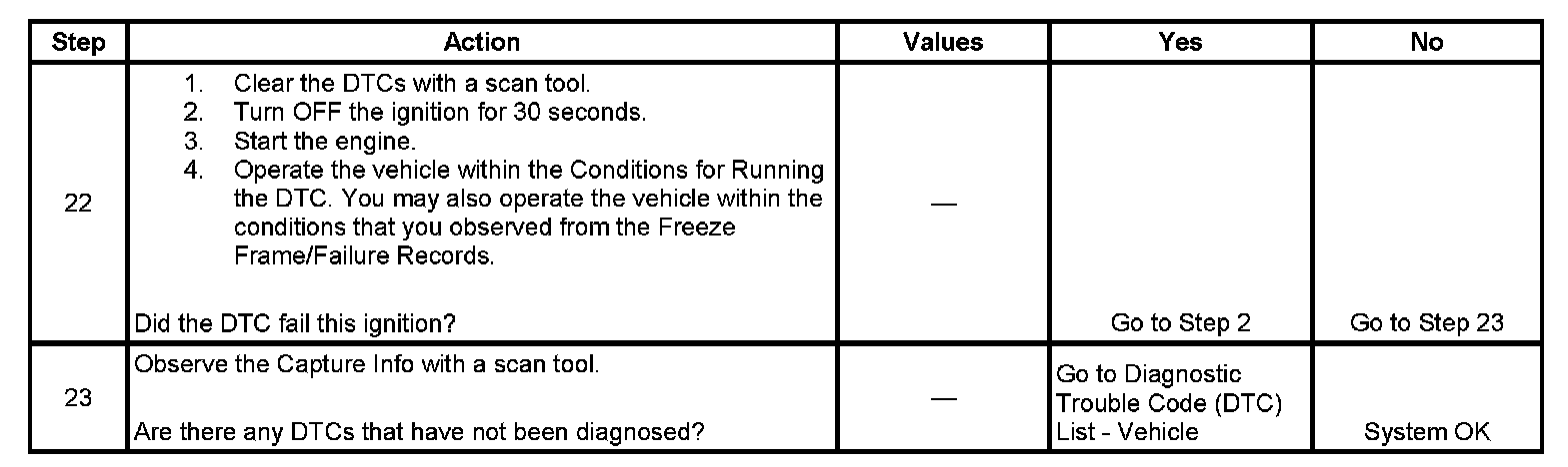 - A current DTC, Last Test Failed, clears when the diagnostic runs and passes.