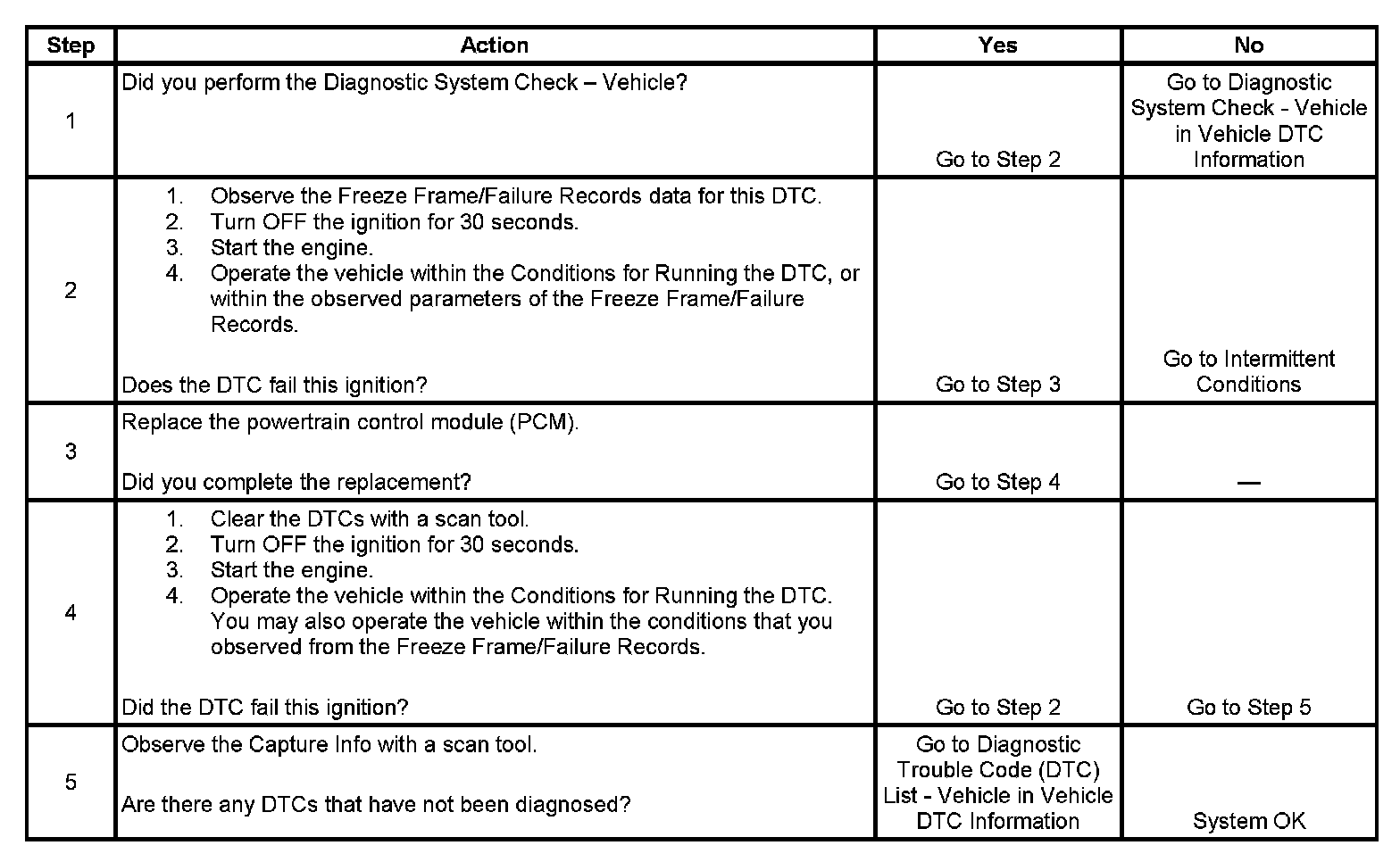 - A current DTC, Last Test Failed, clears when the diagnostic runs and passes.