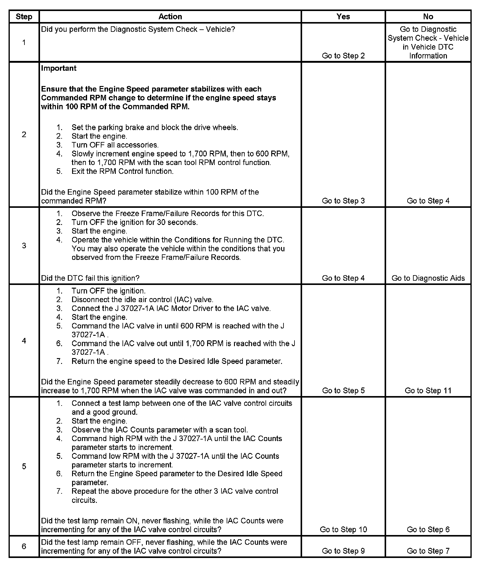 5. This test will determine the ability of the PCM and the IAC valve control circuits to control the IAC valve.