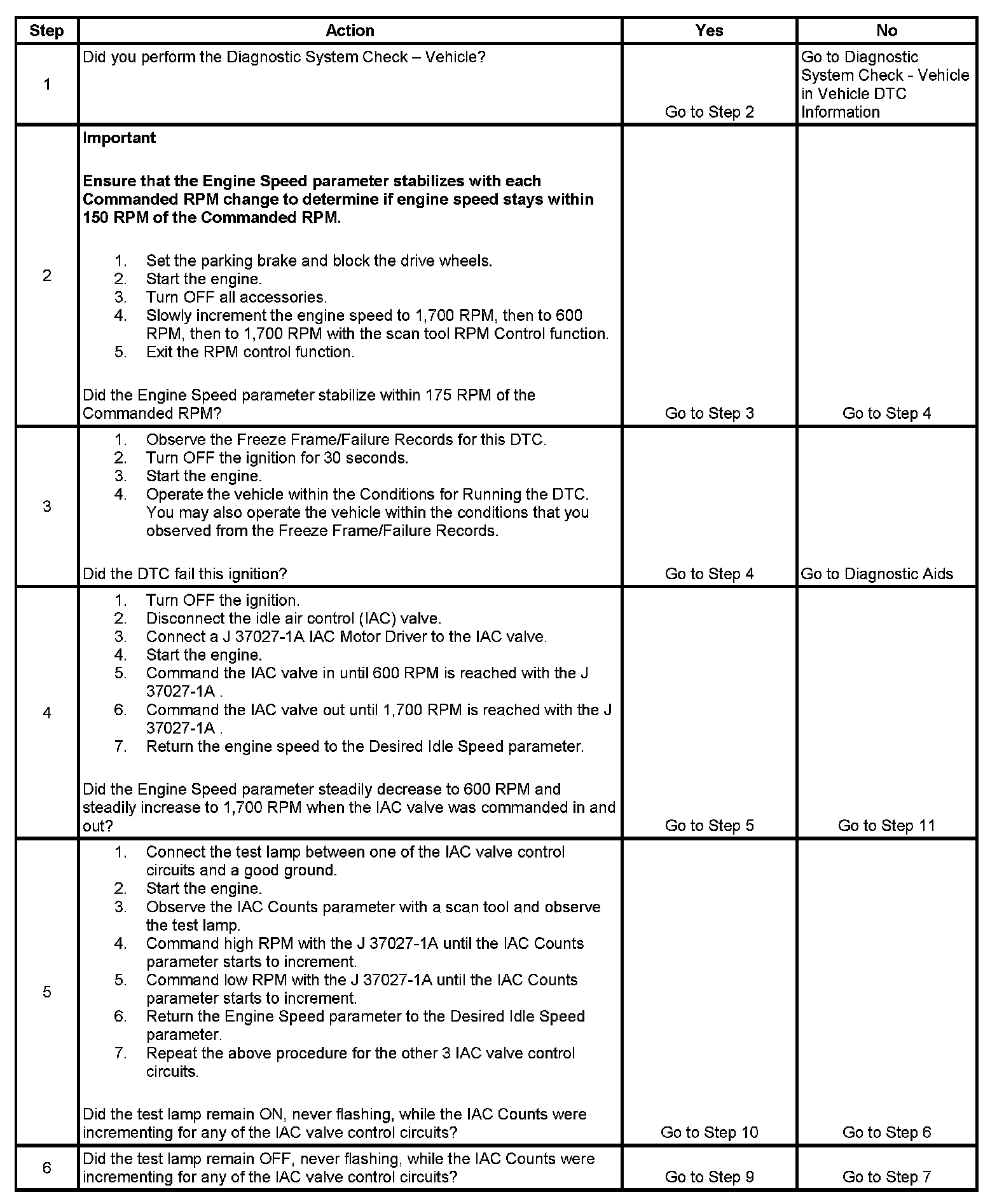 5. This test will determine the ability of the PCM and IAC valve control circuits to control the IAC valve.