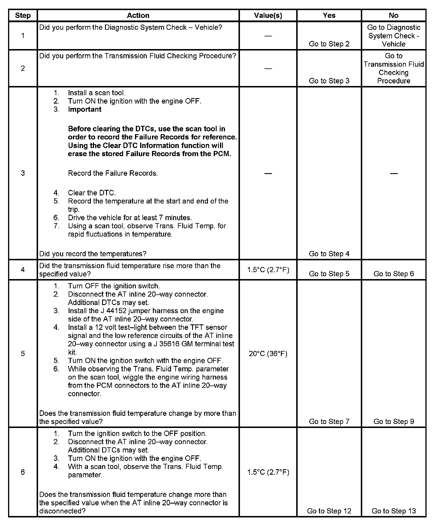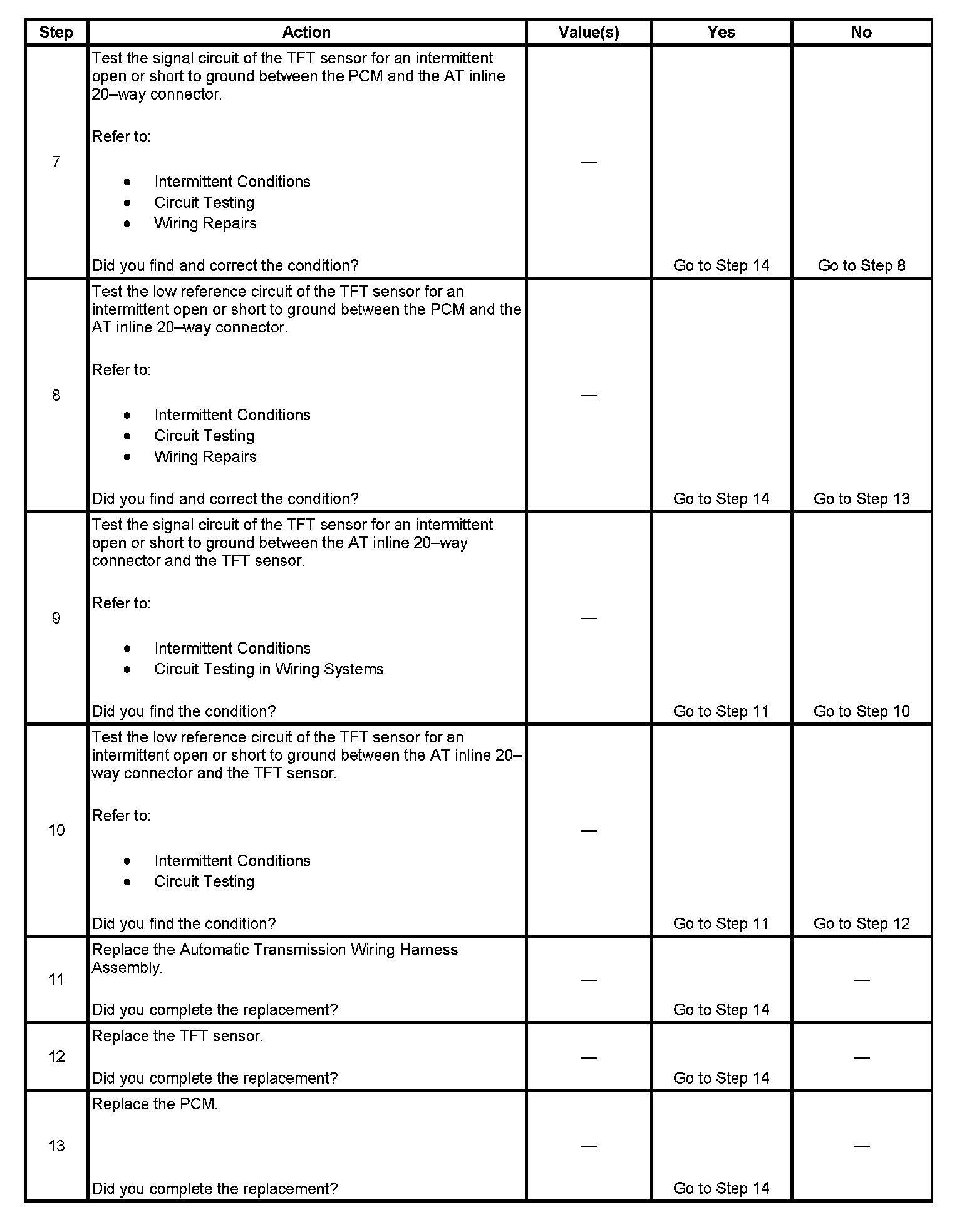 6. This step determines if a condition exists with the PCM or TFT sensor.