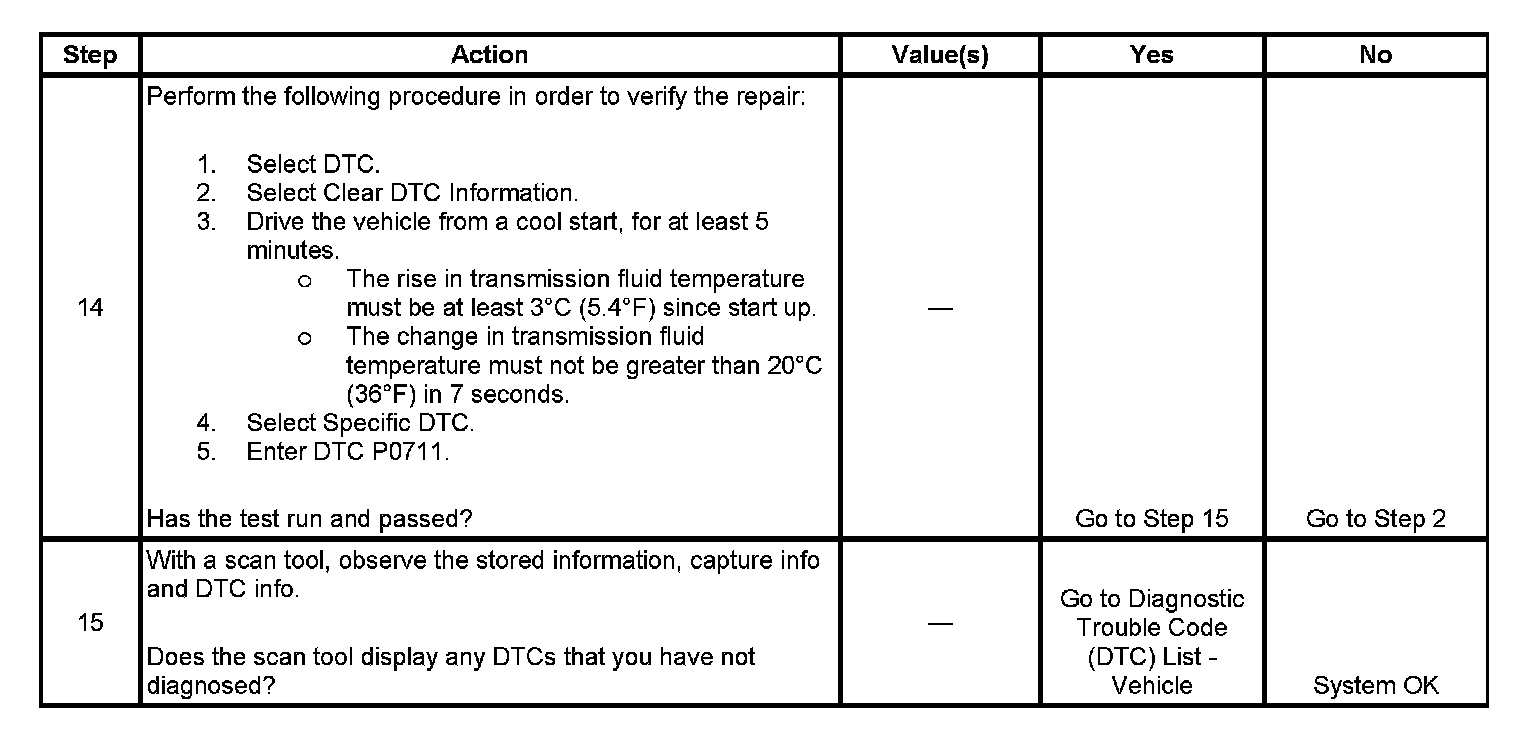 ^ The PCM stores DTC P0711 in PCM history.
