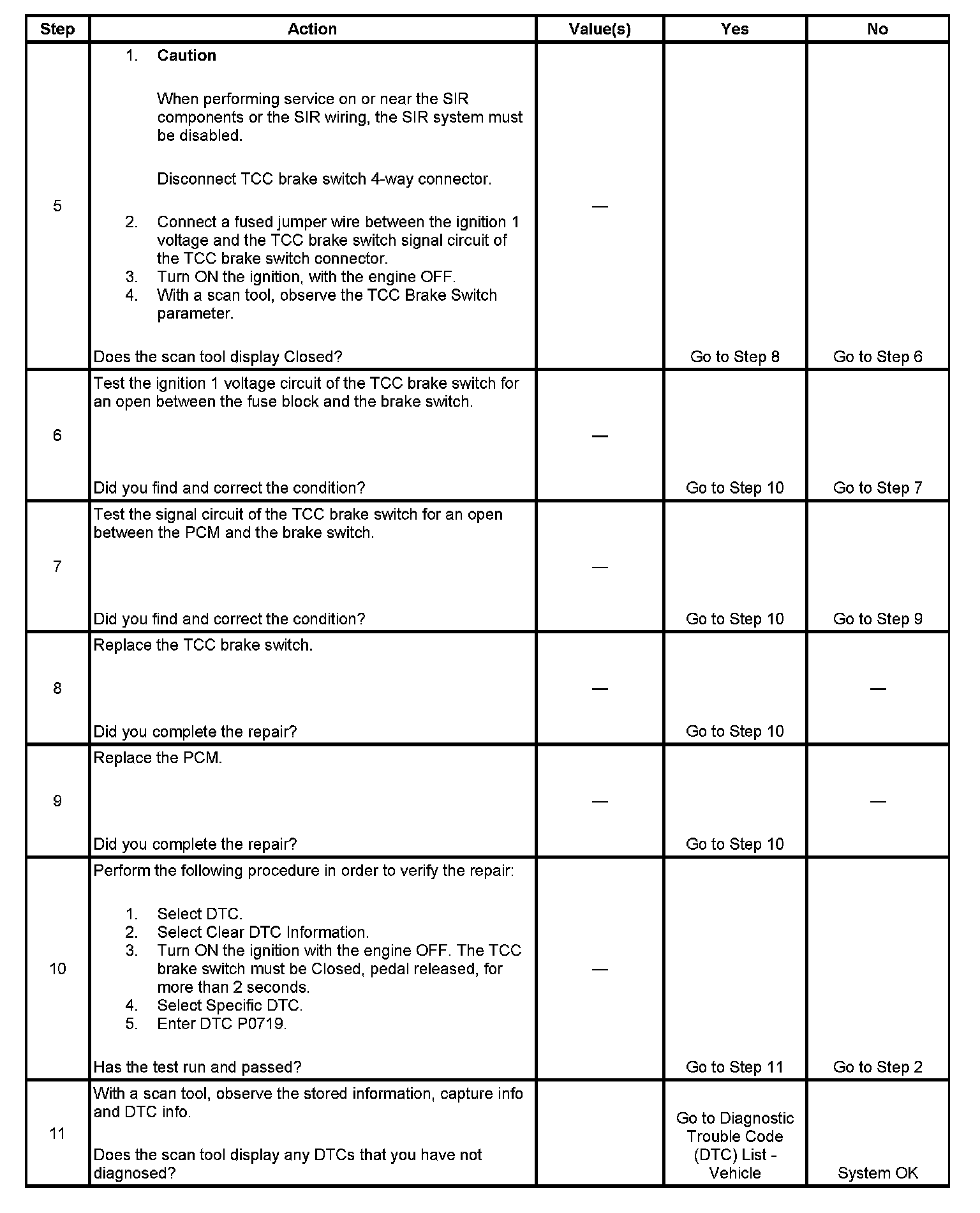 If the PCM detects an open brake switch, indicating pedal applied during a number of accelerations, then DTC P0719 sets. DTC P0719 is a type C DTC.