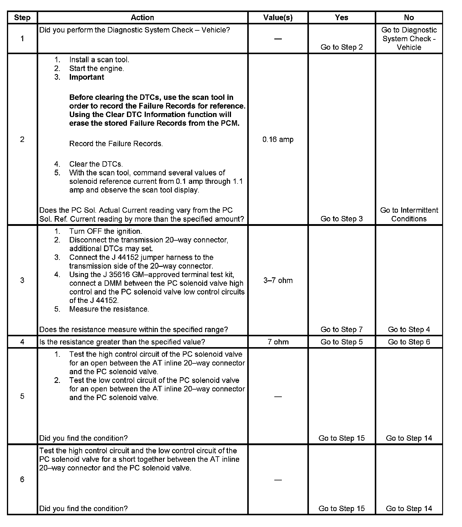 ^ The PCM enters PC solenoid valve diagnostic retest mode. The retest mode conducts this diagnostic routine: