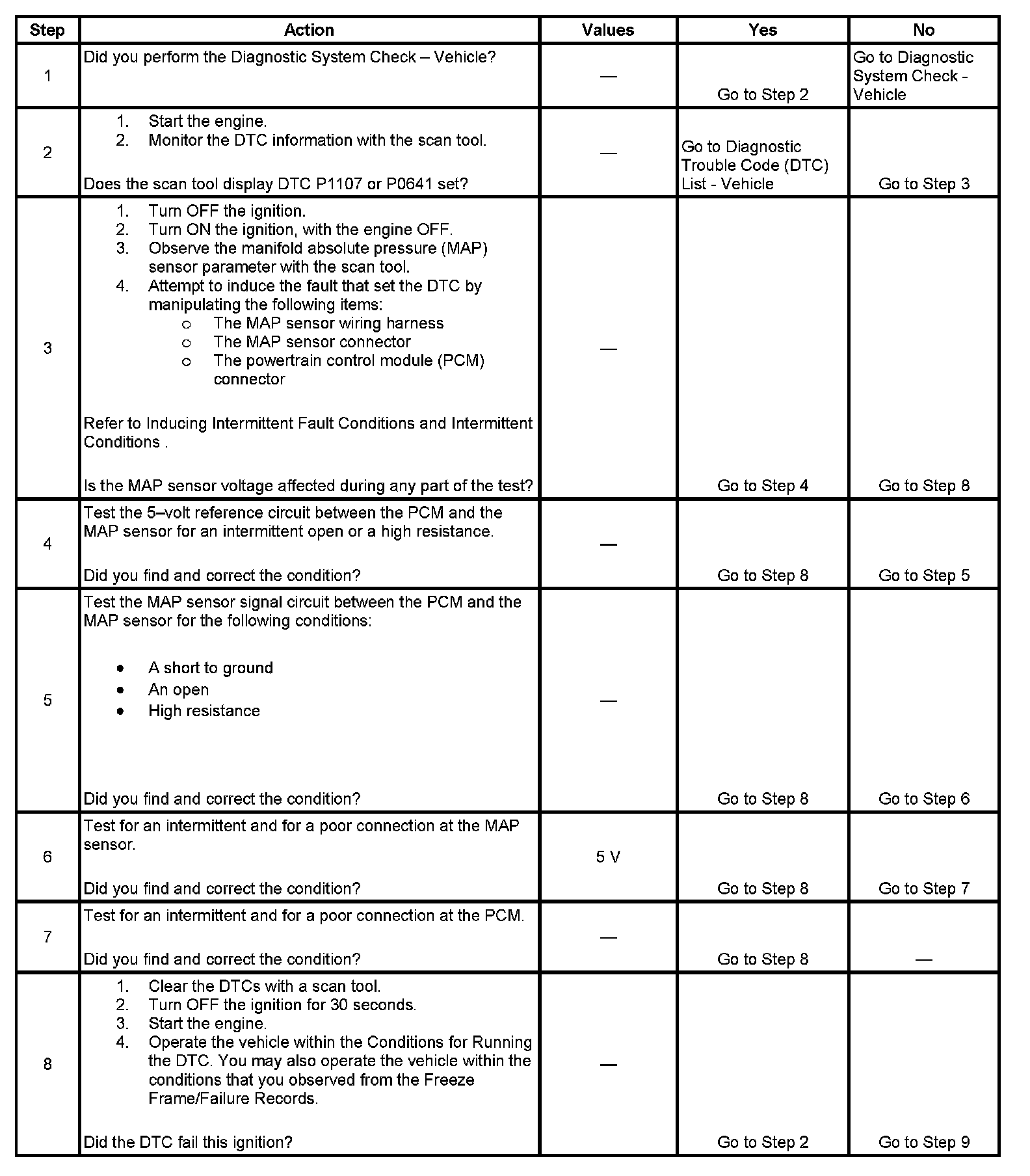 DTC P1107 Manifold Absolute Pressure (MAP) Sensor Circuit Intermittent Low Voltage