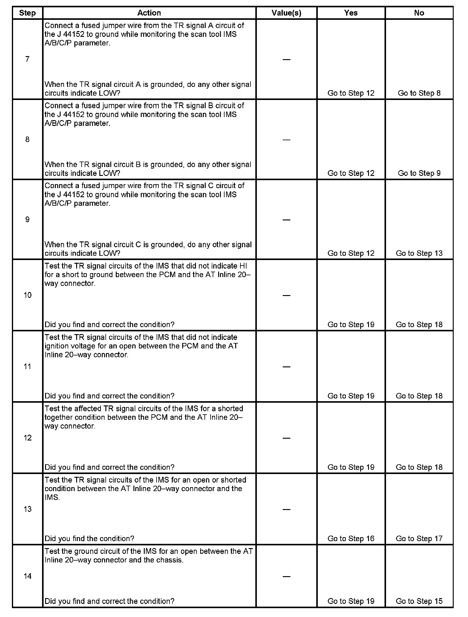 13. This step tests the internal transmission harness. If no fault is found in the harness, the fault will be in the switch.