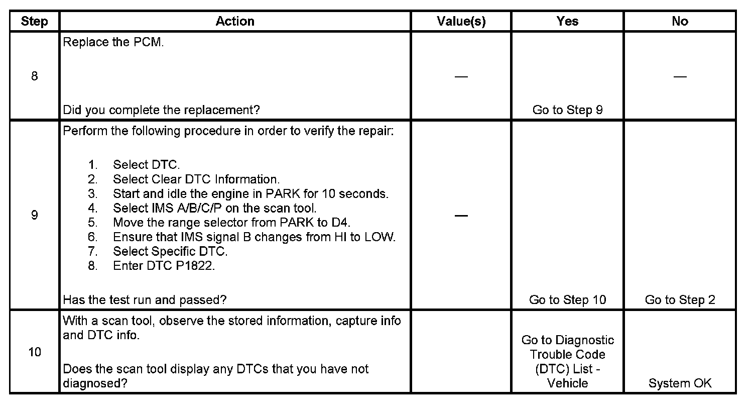 ^ The PCM stores DTC P1822 in PCM history.