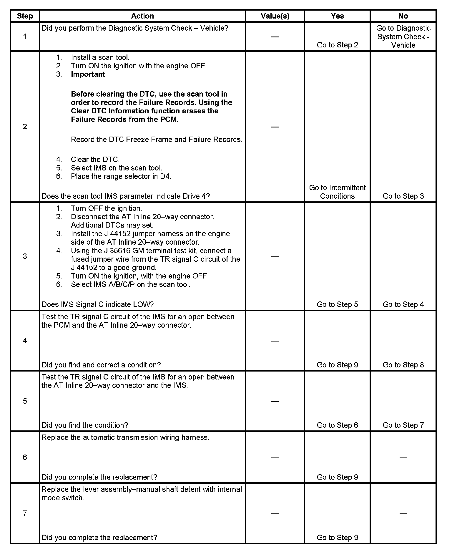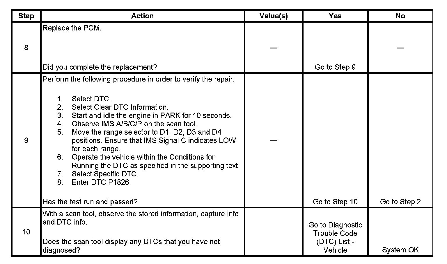 If the PCM detects that IMS Signal C is high while the vehicle is being driven in a forward gear, then DTC P1826 sets. DTC P1826 is a type C DTC.