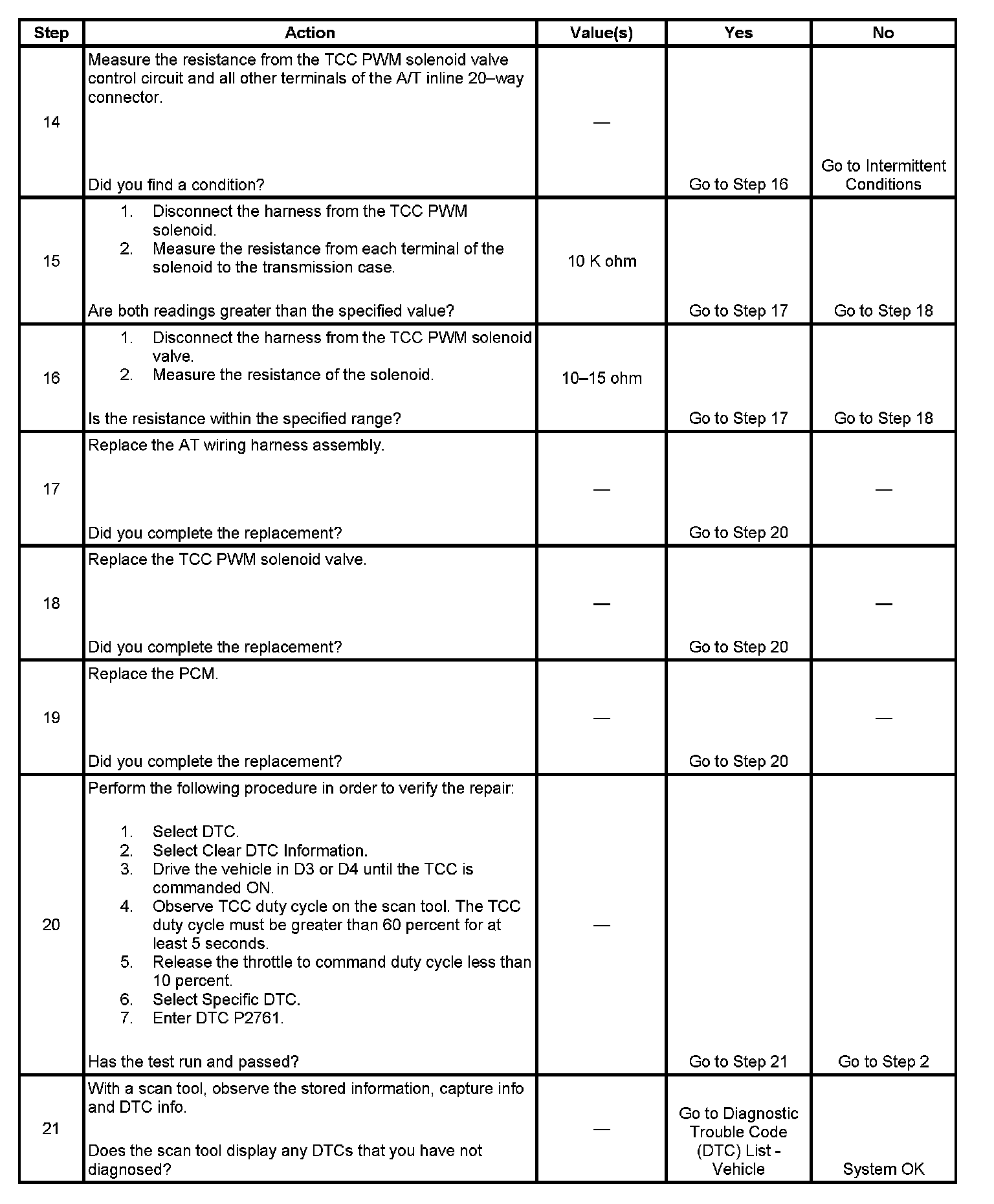 DTC P2761 Torque Converter Clutch (TCC) Pressure Control (PC) Solenoid Control Circuit