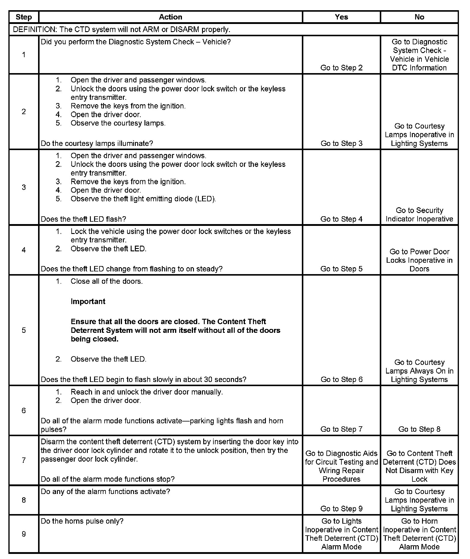 Alarm Mode Inoperative - Content Theft Deterrent (CTD)
