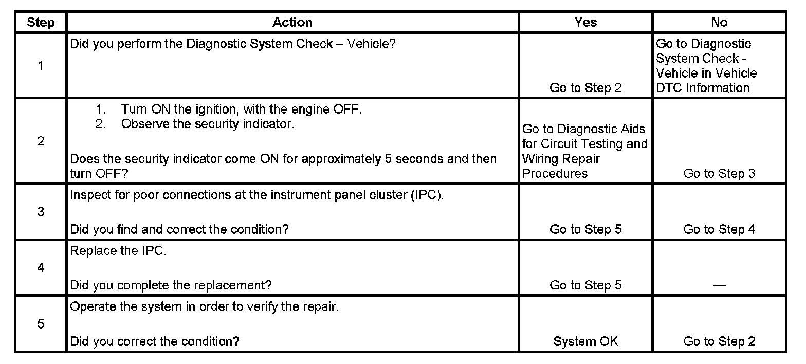 SECURITY Indicator Inoperative