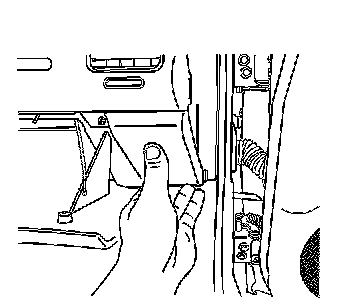 2. Install the right lower I/P trim plate starting at the bottom. Press the panel straight in and work upward, pressing in the retainers until fully seated.