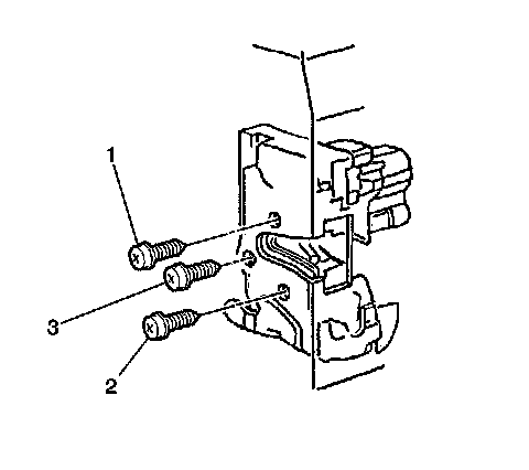 4. Install the rear door lock screws in the proper fastener tightening sequence as shown in graphic: top (1), bottom (2), middle (3).
