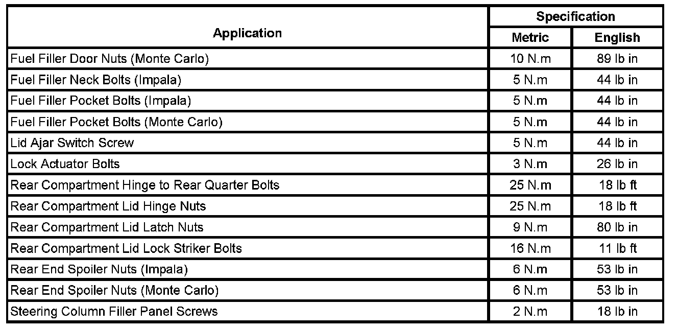 Fastener Tightening Specifications