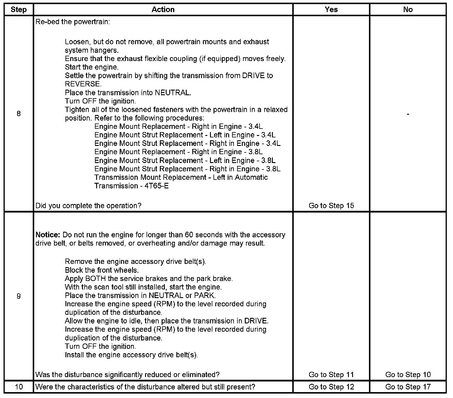 When loosening powertrain mounts in order to re-bed the powertrain observe the following: