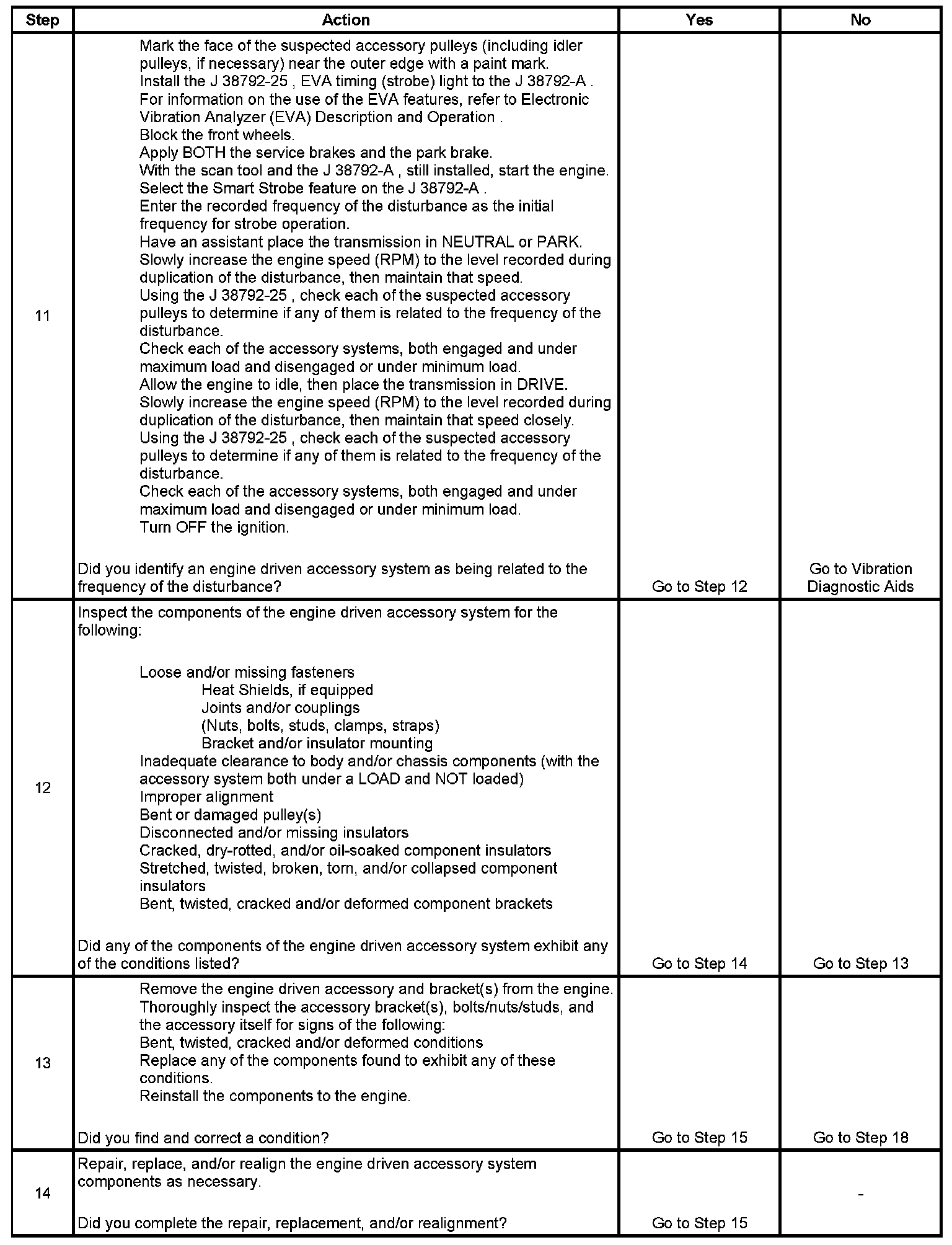 10. Non-rotating engine driven accessory components can no longer produce a unique disturbance. If a disturbance is still present, but the characteristics have been altered, it is possible that these component systems are acting as a transfer path for engine firing frequency or a first order engine disturbance.