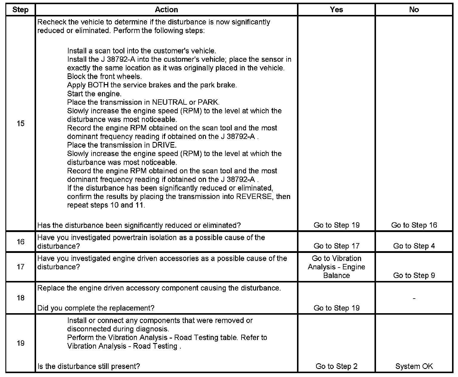If a disturbance is still present, but the characteristics have NOT been altered, it is NOT likely that these component systems are acting as a transfer path for engine firing frequency or a first order engine disturbance.