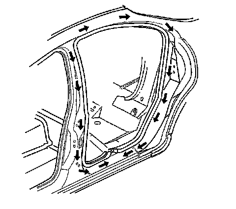 3. Remove the weatherstrip from the rear door opening by pulling the weatherstrip off the pinchweld flange.