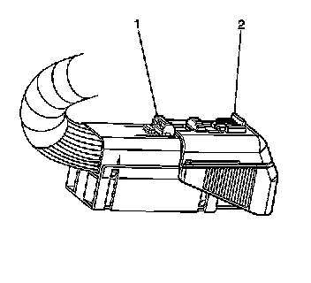 7. Disengage the red locking tab (1) from connector lock tab.