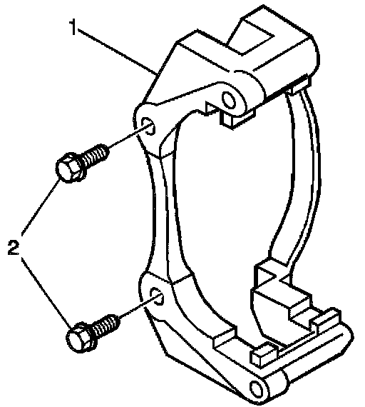 3. Install the caliper bracket (1) with the bracket bolts (2).