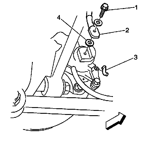 Install the brake hose to caliper bolt (1) to the brake caliper.