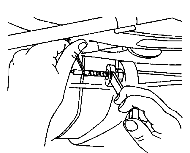 2. Disconnect the left rear park brake cable and adjustment stud assembly from the equalizer assembly by removing the equalizer nut from the adjustment stud.