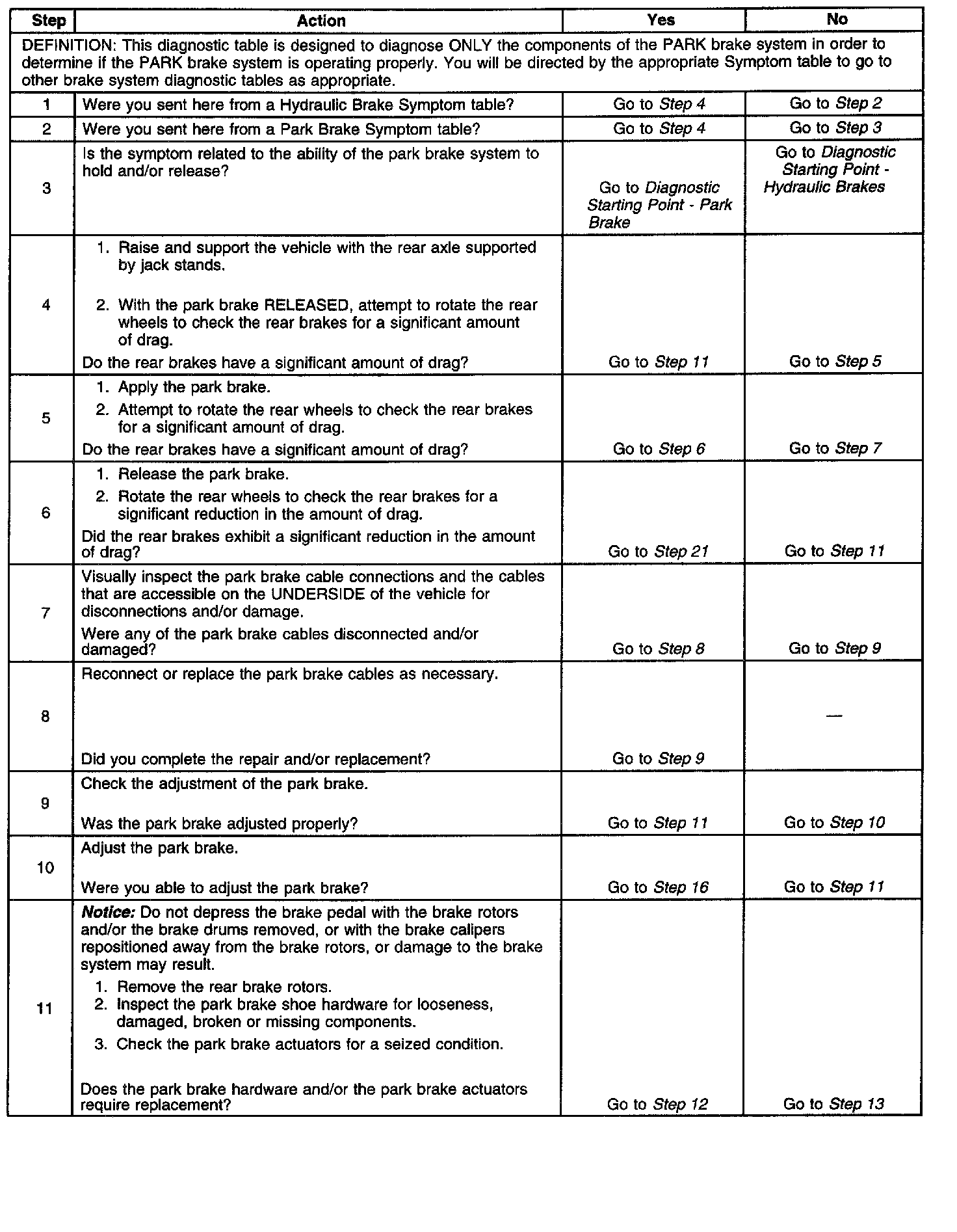 Park Brake System Diagnosis