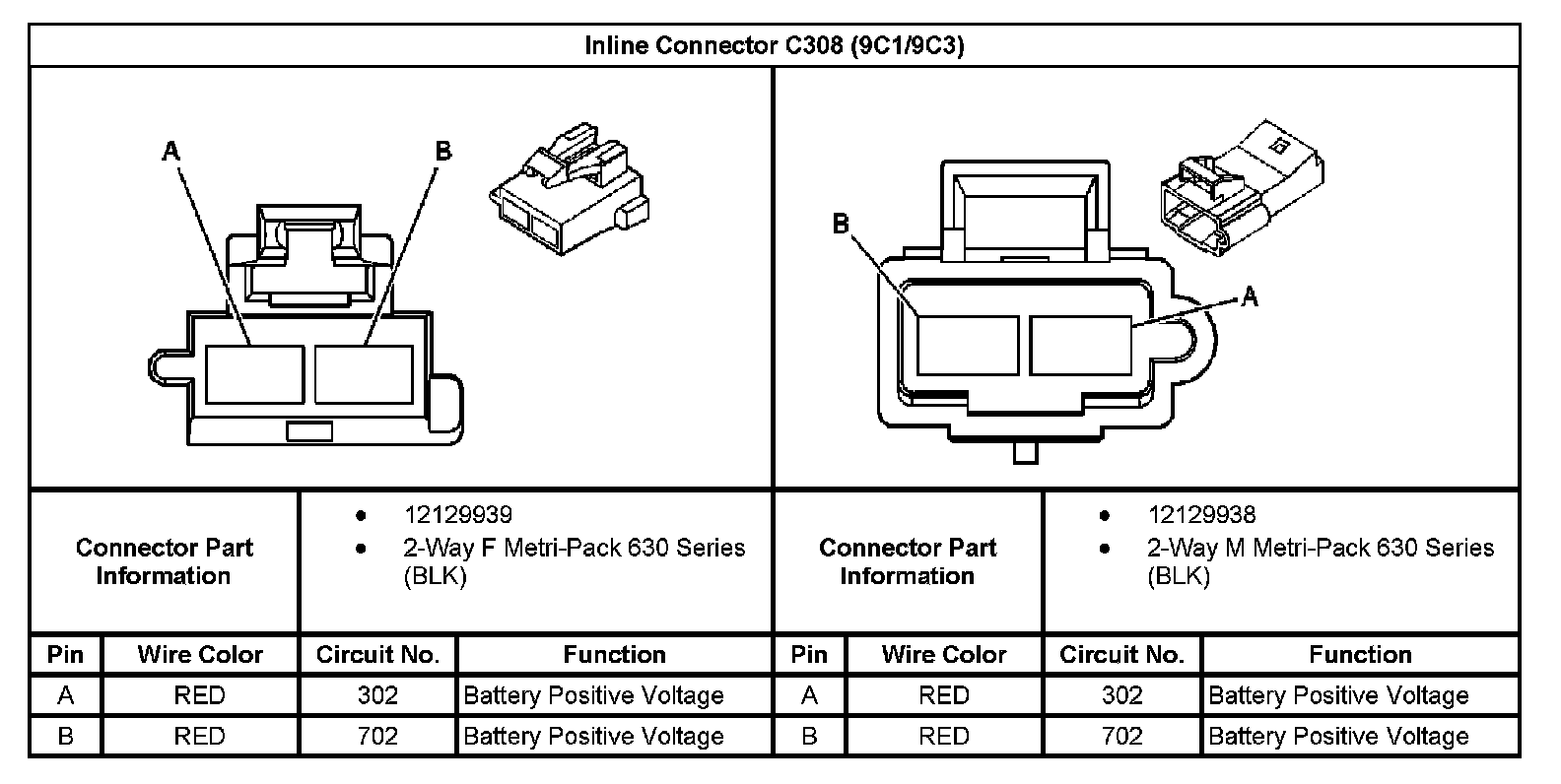 Inline Connector C308 (With RPO Code 9C1/9C3):