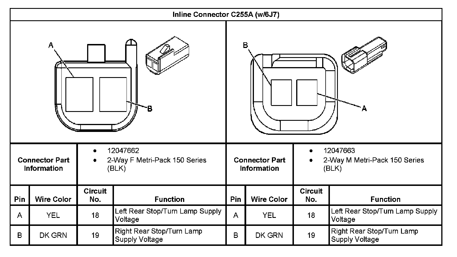 Inline Connector C255A (With RPO Code 6J7):