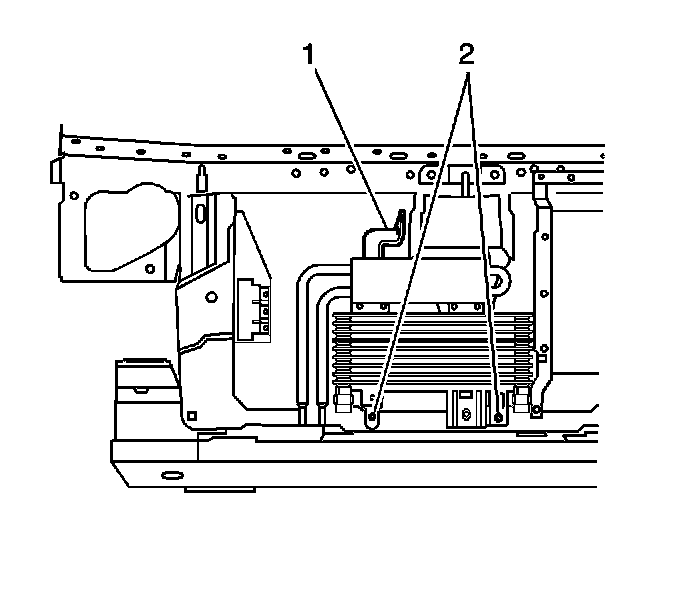 Install the upper bolt (1) to the engine oil cooler/power steering cooler bracket.