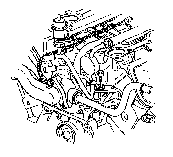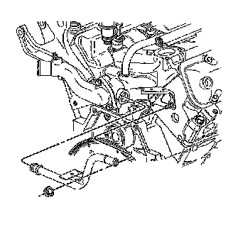11. Remove the heater inlet pipe with the heater hose from the lower intake manifold and reposition the pipe.