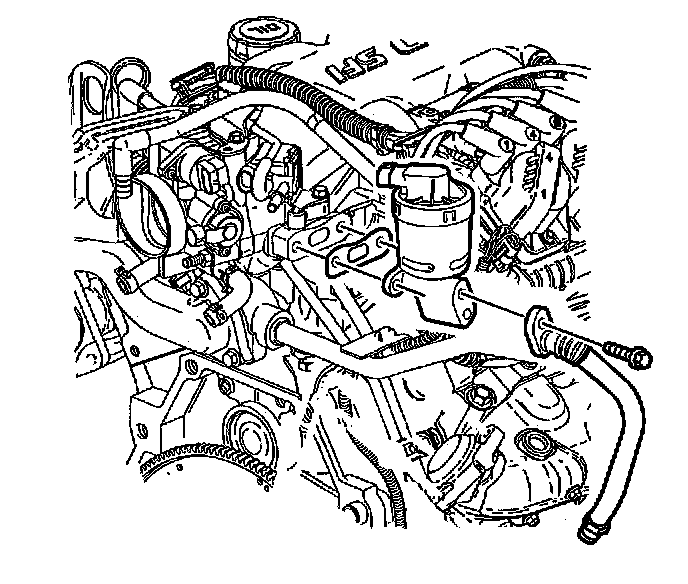 10. Remove the purge valve bracket bolt, hose and valve assembly.
