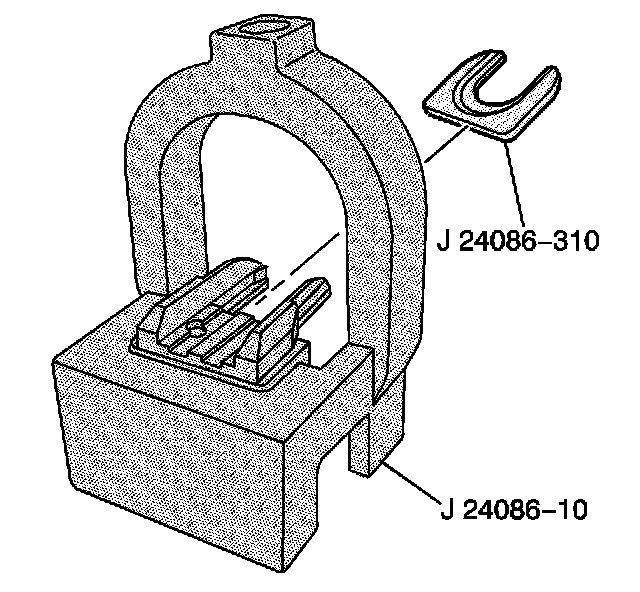 2. Install fork insert J 24086-310 into fixture J 24086-10 piston pin remover/installer base, which are part of J 24086-C.
