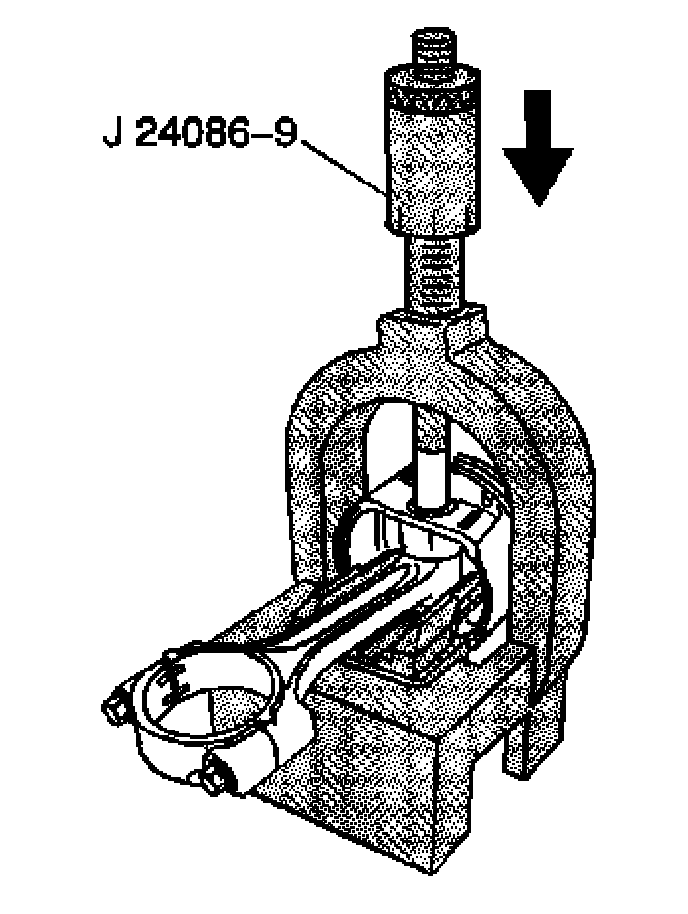 Insert pin J 24086-9 through fixture J 24086-10, which are part of J 24086-C and to the piston pin.