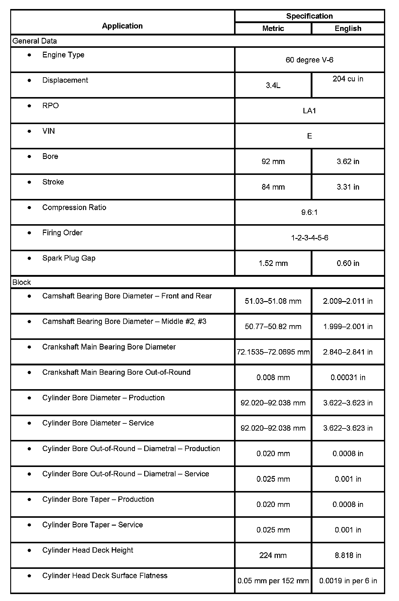 Impala V6-3.4L VIN E