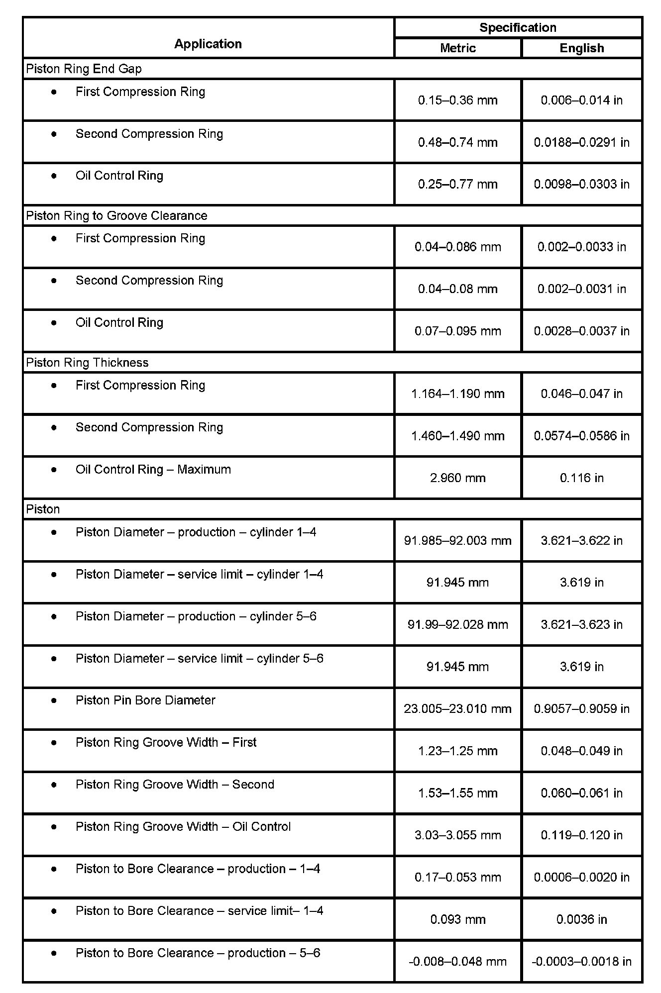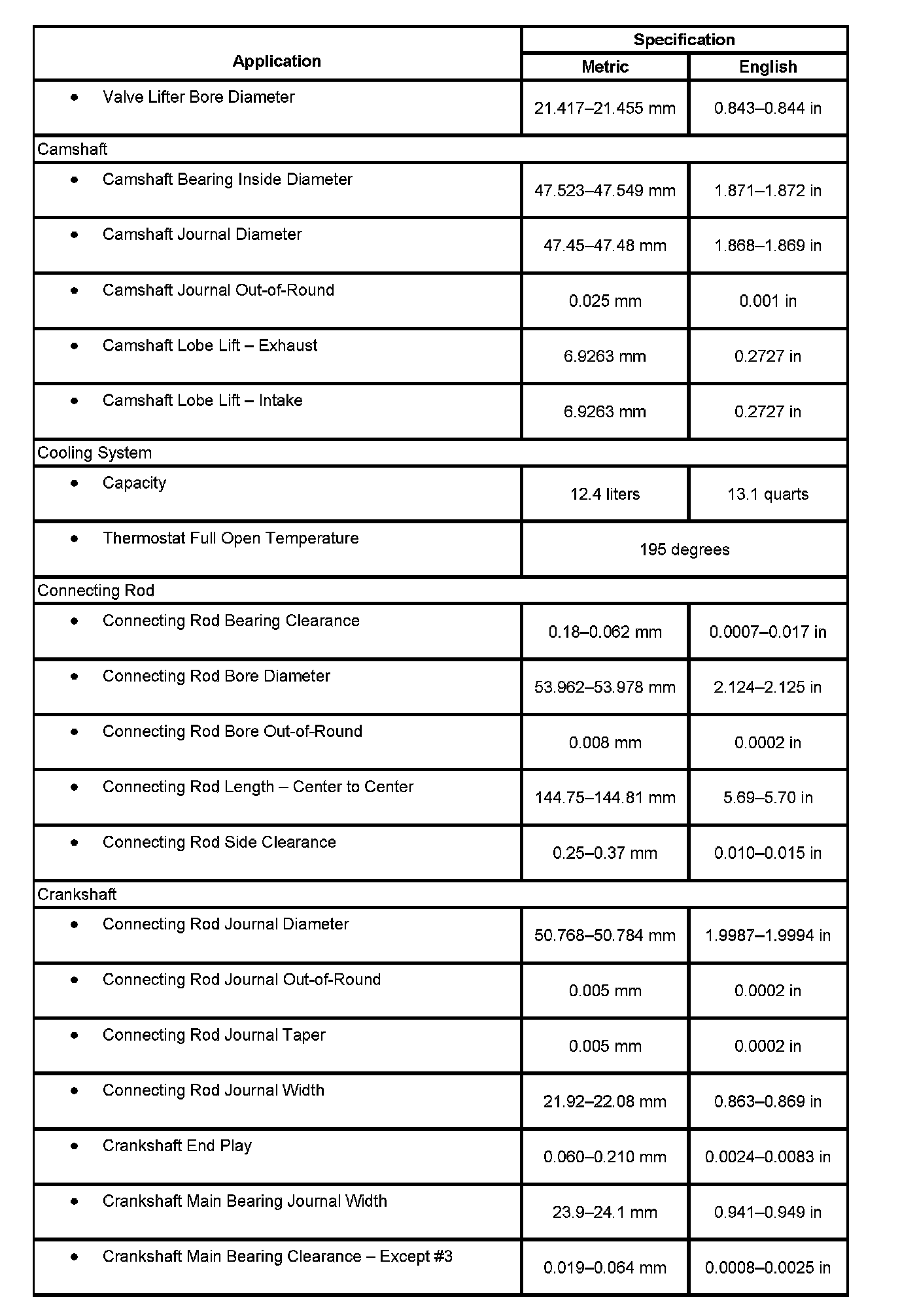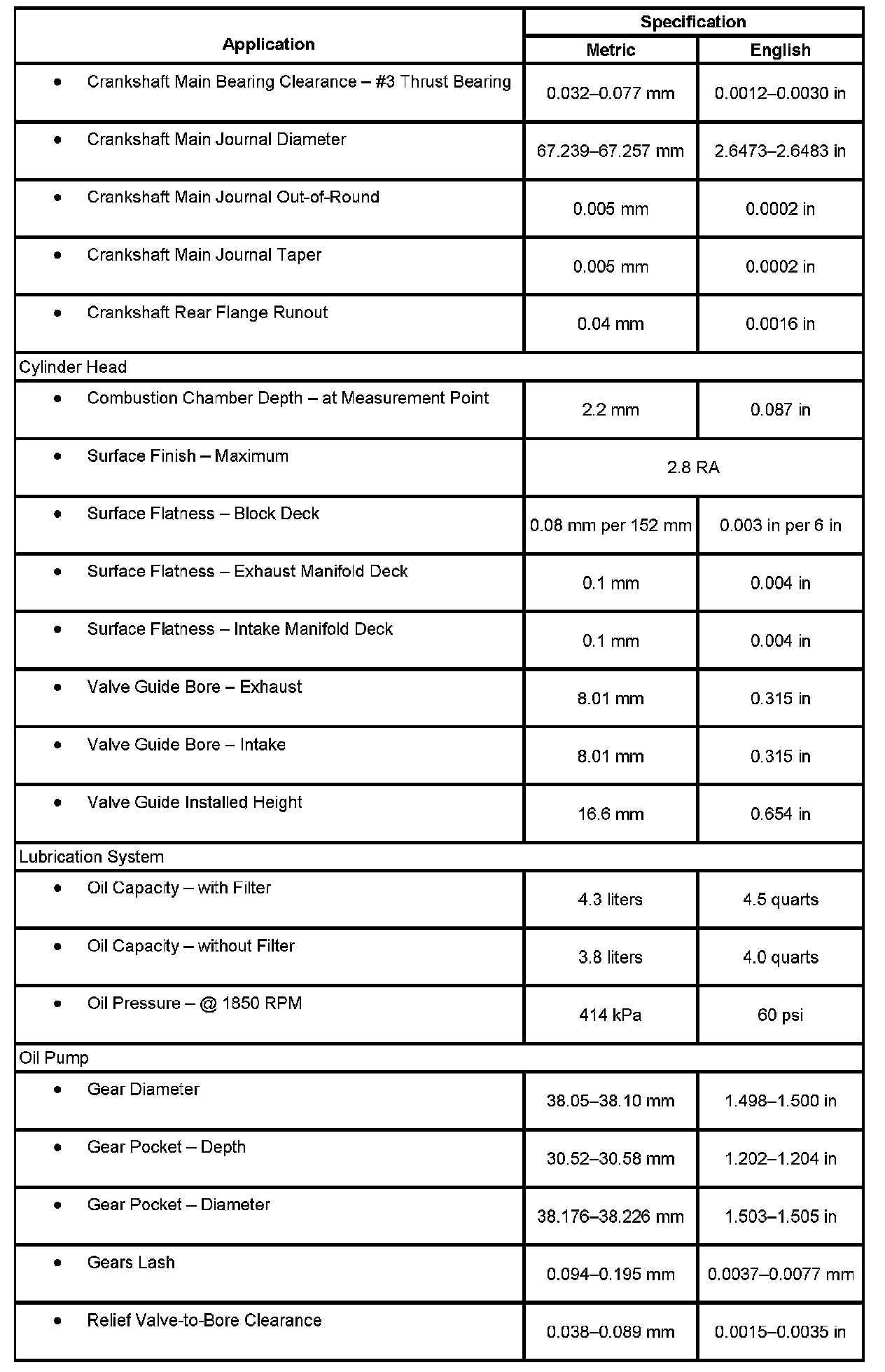 Engine Mechanical Specifications