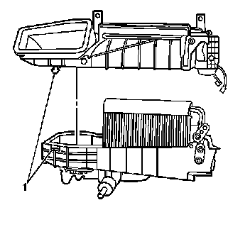 15. Separate the HVAC module assembly case (1).