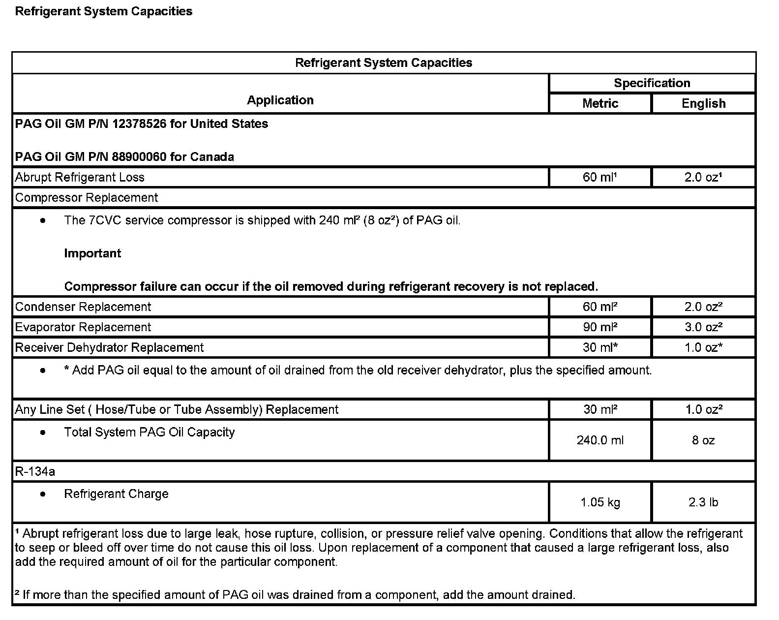 Capacity Specifications